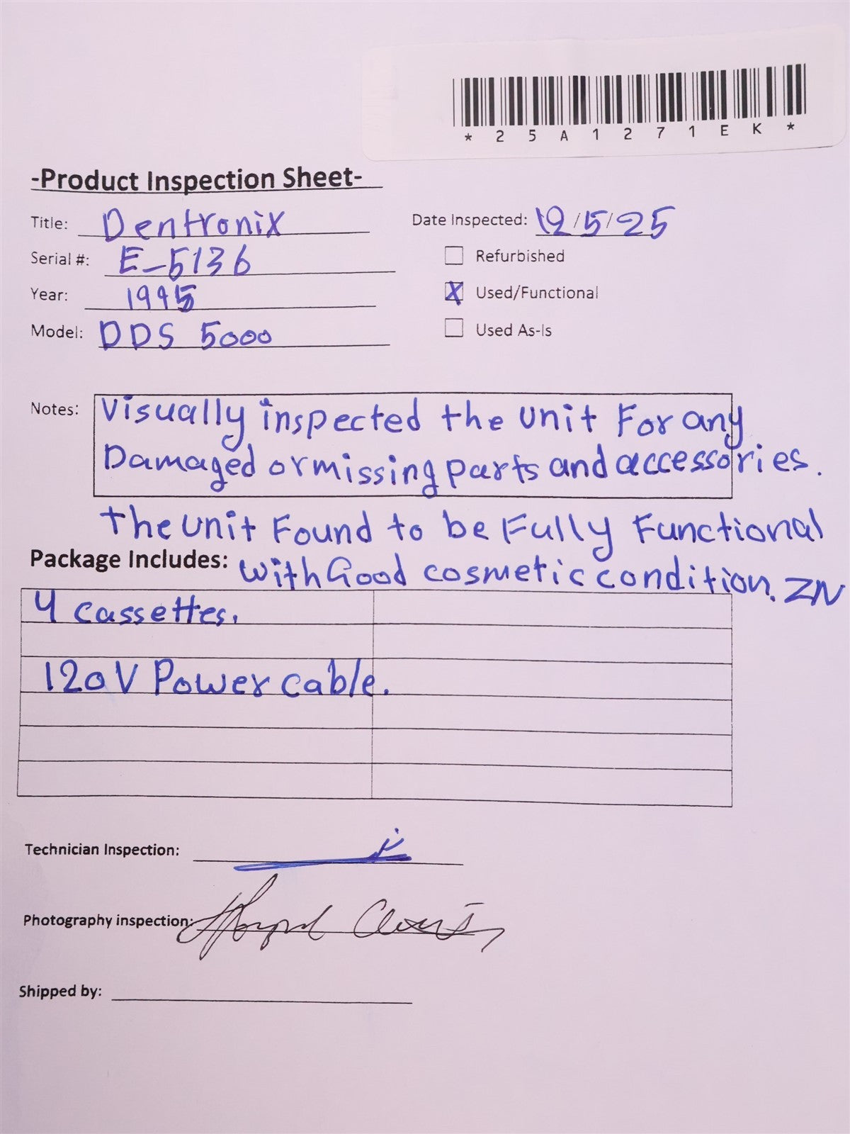 Visaully inspected the unit for any damaged or missing pats and accessories. I plugged in, I tested, and calibrated. the unit found to be fully functional with good cosmetic condition. ZN