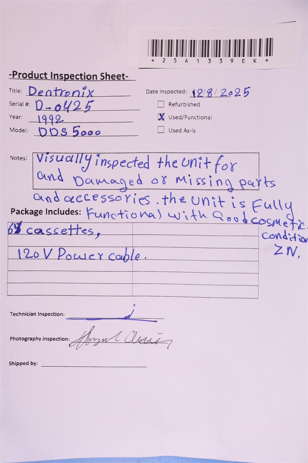 - Serial Number: D-0425