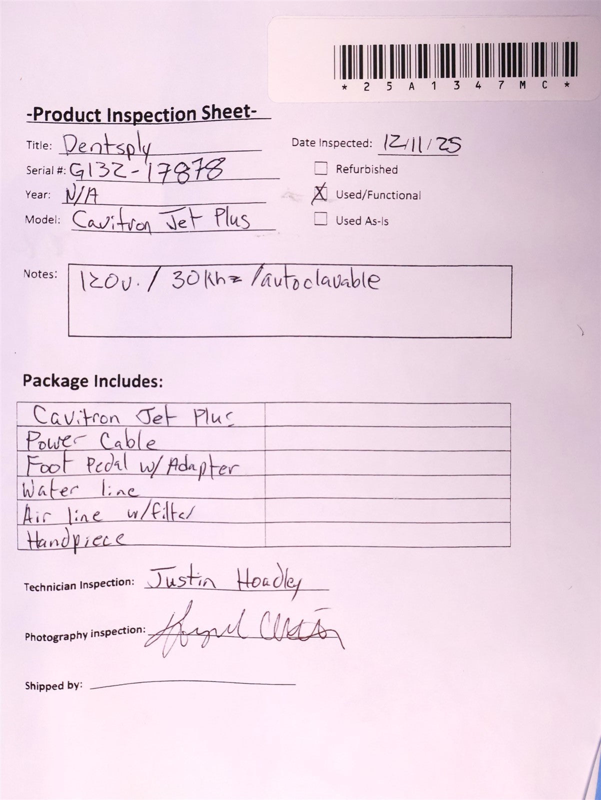 Cavitron Jet Plus Gen-132, Power Cable, Foot Pedal with Adapter Cable, Water Hose, Air Hose with Filter