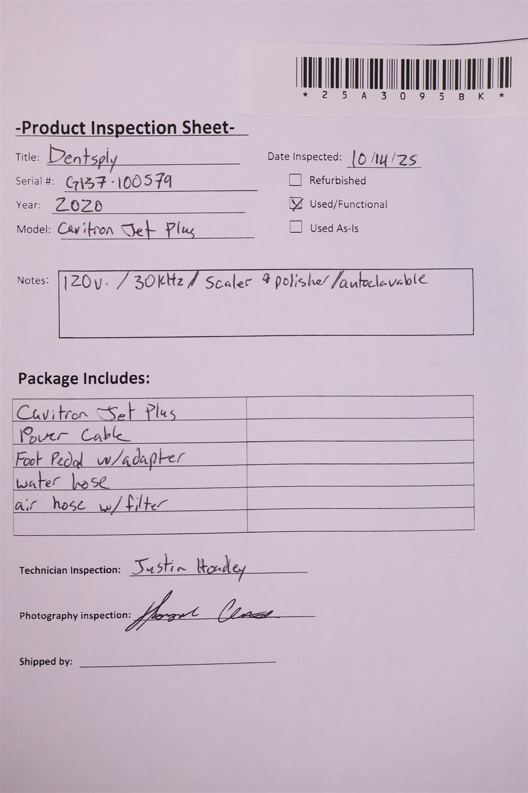 Your purchase will NOT include: This product is pre-owned and may not include the same accessories as a new, unused unit. - other accessories not shown or listed here.The unit was successfully powered on and connected to both water and air supplies. Functional testing was conducted on the handpiece, foot pedal, and all control buttons. Each component responded appropriately, confirming that the system is operating within expected parameters.