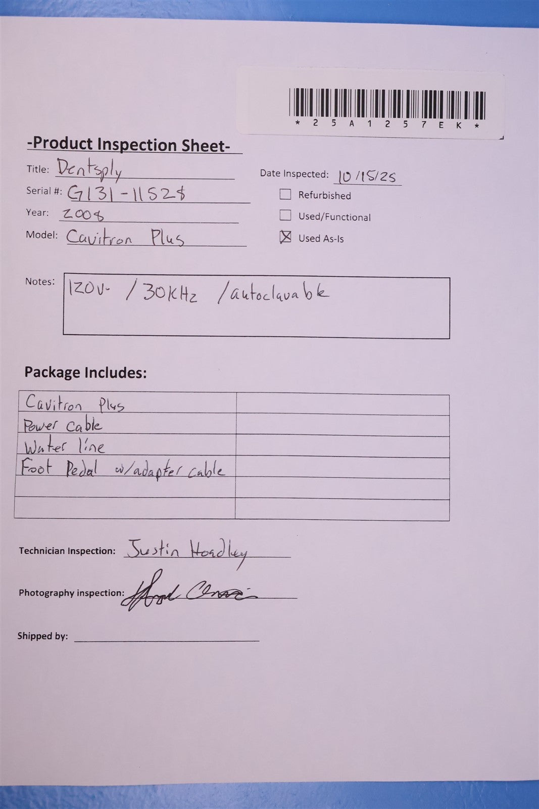 Your purchase will NOT include: HandpieceThis product is pre-owned and may not include the same accessories as a new, unused unit. - other accessories not shown or listed here.The unit was successfully powered on and connected to the water supply and foot pedal. A full functionality check was performed, confirming that all components operate as intended. Unit does not include handpiece.