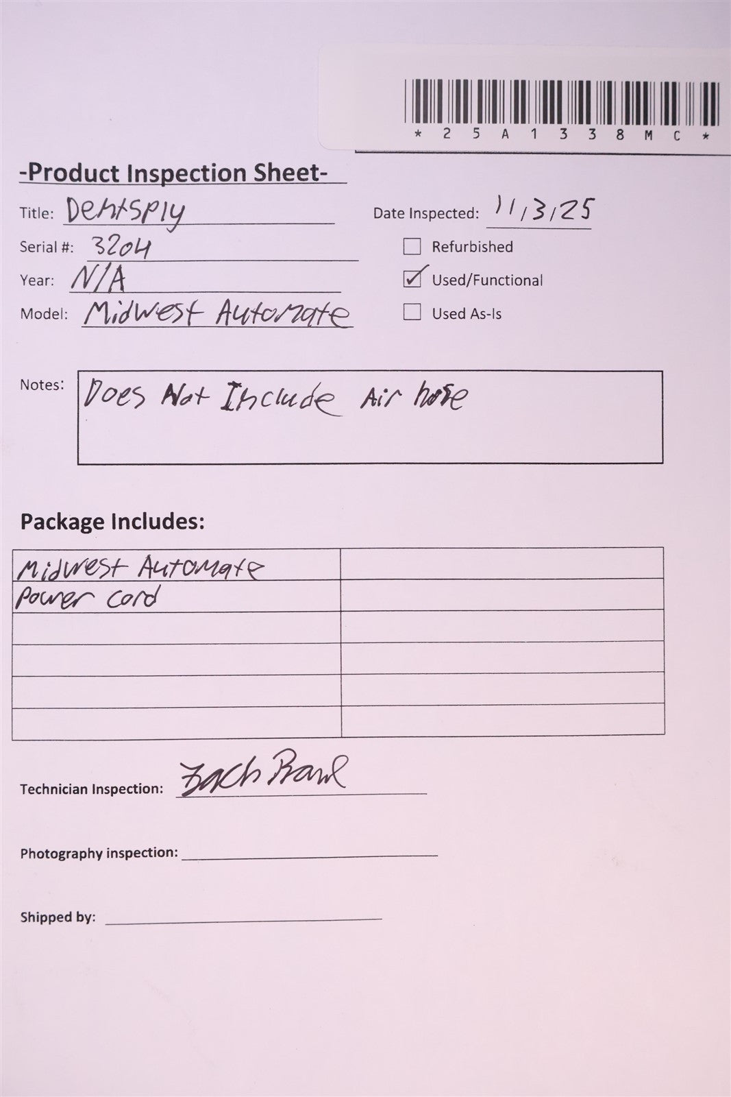 Your purchase will NOT include: Air HoseThis product is pre-owned and may not include the same accessories as a new, unused unit. - other accessories not shown or listed here.This item has undergone a thorough visual inspection and functional testing to check for any and all defects. The unit has been confirmed to be in complete working condition, with no issues or malfunctions detected.