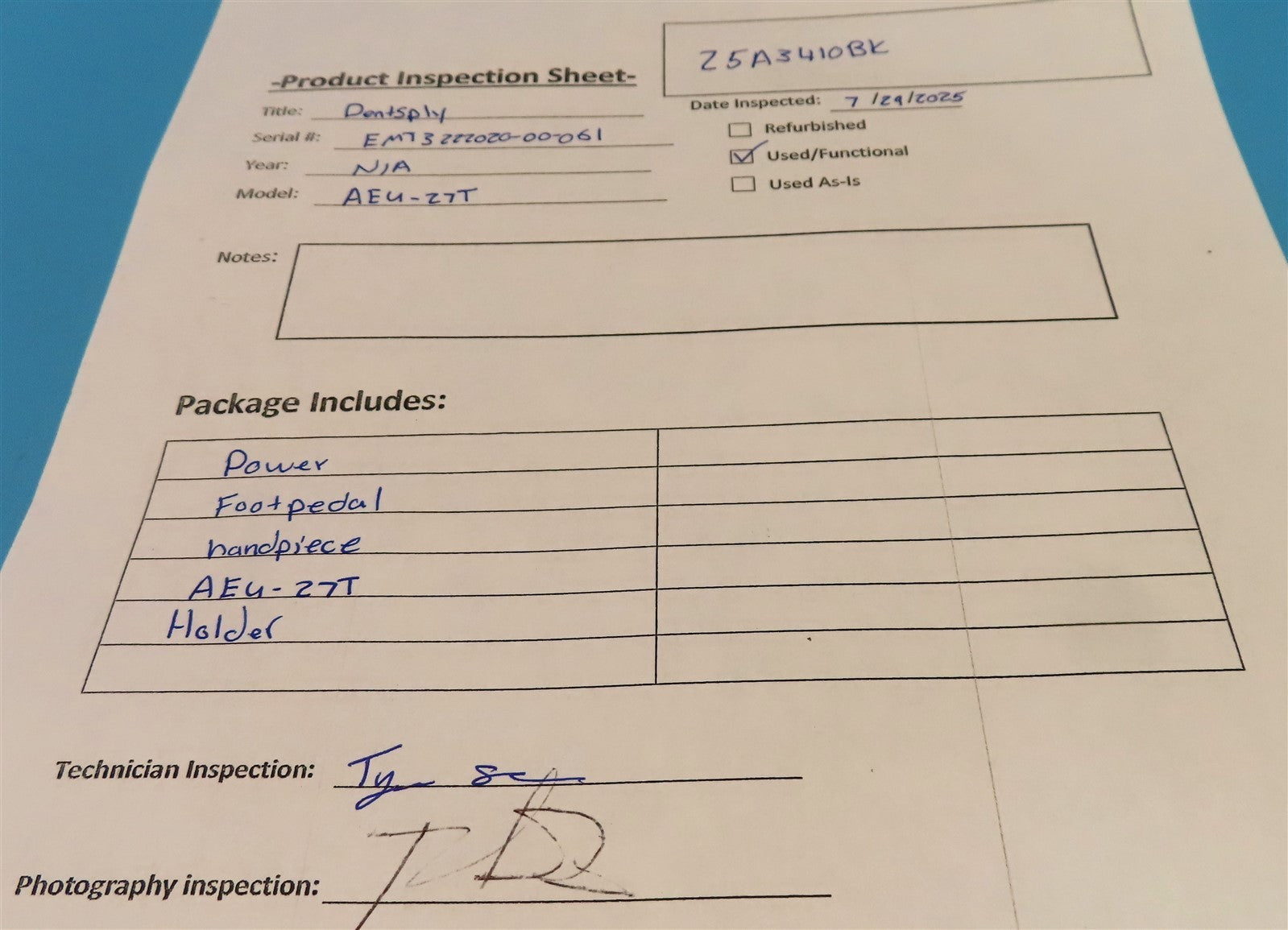 Your purchase will NOT include: This product is pre-owned and may not include the same accessories as a new, unused unit. - other accessories not shown or listed here.Dentsply ProMark – Precision Dental HandpieceReliable Performance Delivers consistent and precise operation for a wide range of dental procedures. Engineered for smooth, accurate performance to enhance treatment outcomes.Ergonomic and User-Friendly Lightweight, well-balanced design reduces hand fatigue during extended use. Intuitive controls allow quick adjustments and easy operation for dental professionals.Durable and Long-Lasting Constructed with high-quality materials for reliable daily use in busy practices. Designed for easy maintenance and long-term durability.Optimized Workflow Compact and versatile design integrates seamlessly into any operatory setup. Supports efficient procedures while maintaining precision and control.Dentsply ProMark — A dependable dental handpiece built for precision, reliability, and professional performance.This item looks to have been lightly used. I set this item up and calibrated the handpiece. This unit is fully functional and is in excellent cosmetic condition