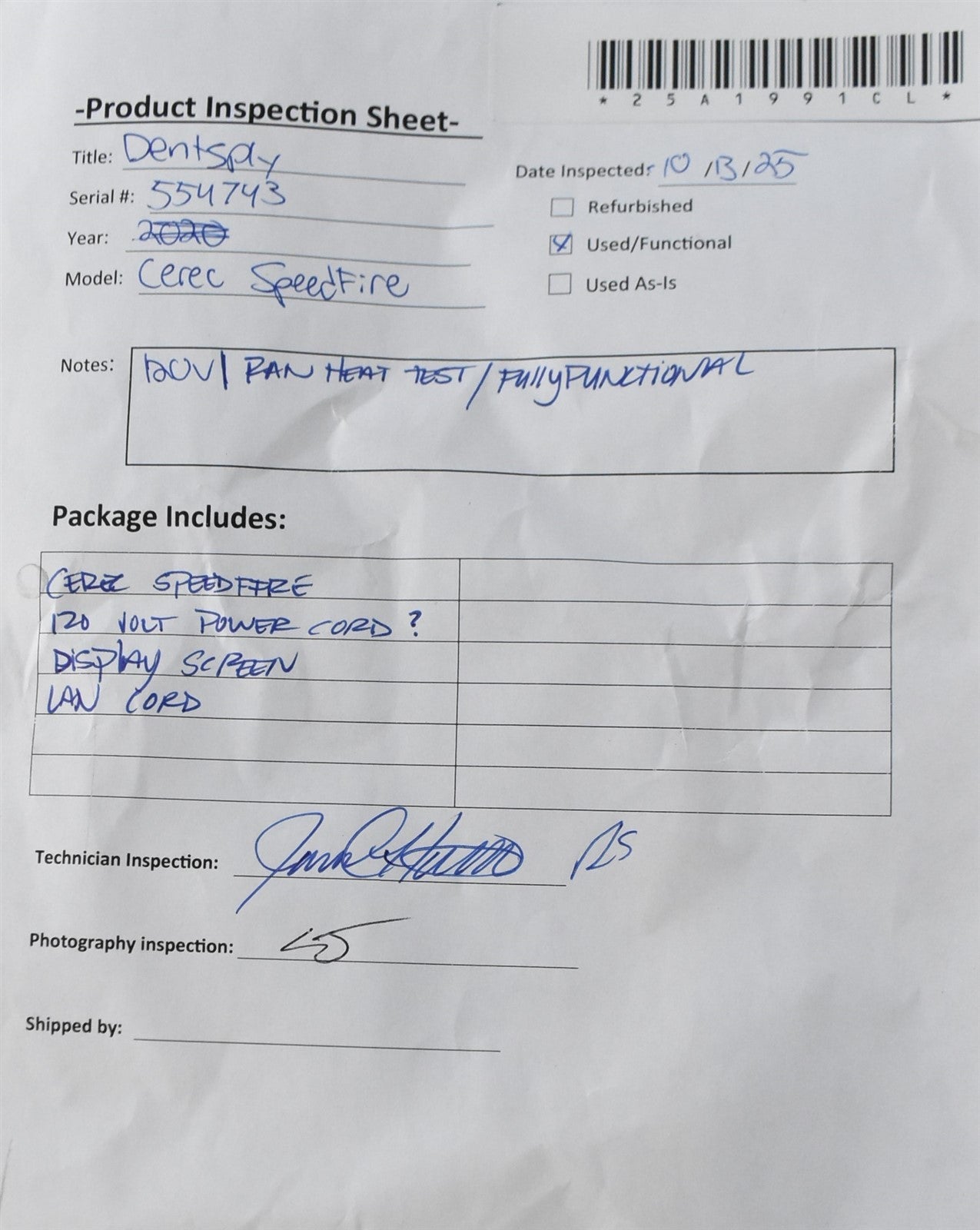 Sirona Speedfire, 120V ower Cable, Display Screen, Patch Cable