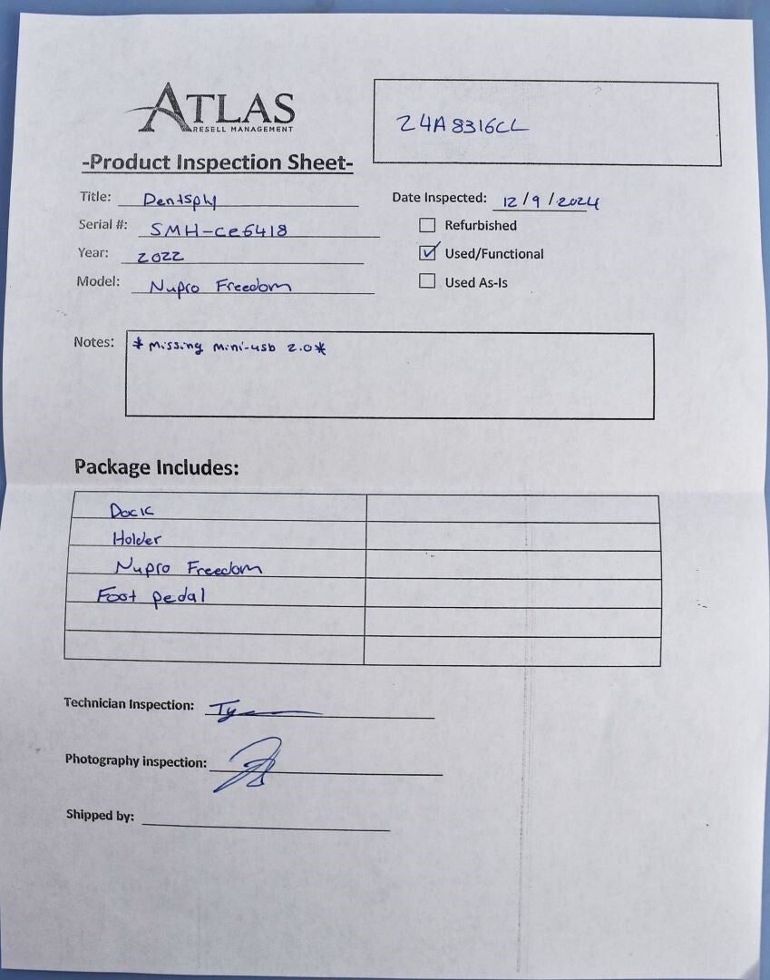 This units a fully functional 2022 Nu pro Freedom. This unit doesn't not include a Mini USB 2.0 for charging. That will need purchased separately. I charged the foot pedal and the Nupro to full before testing.