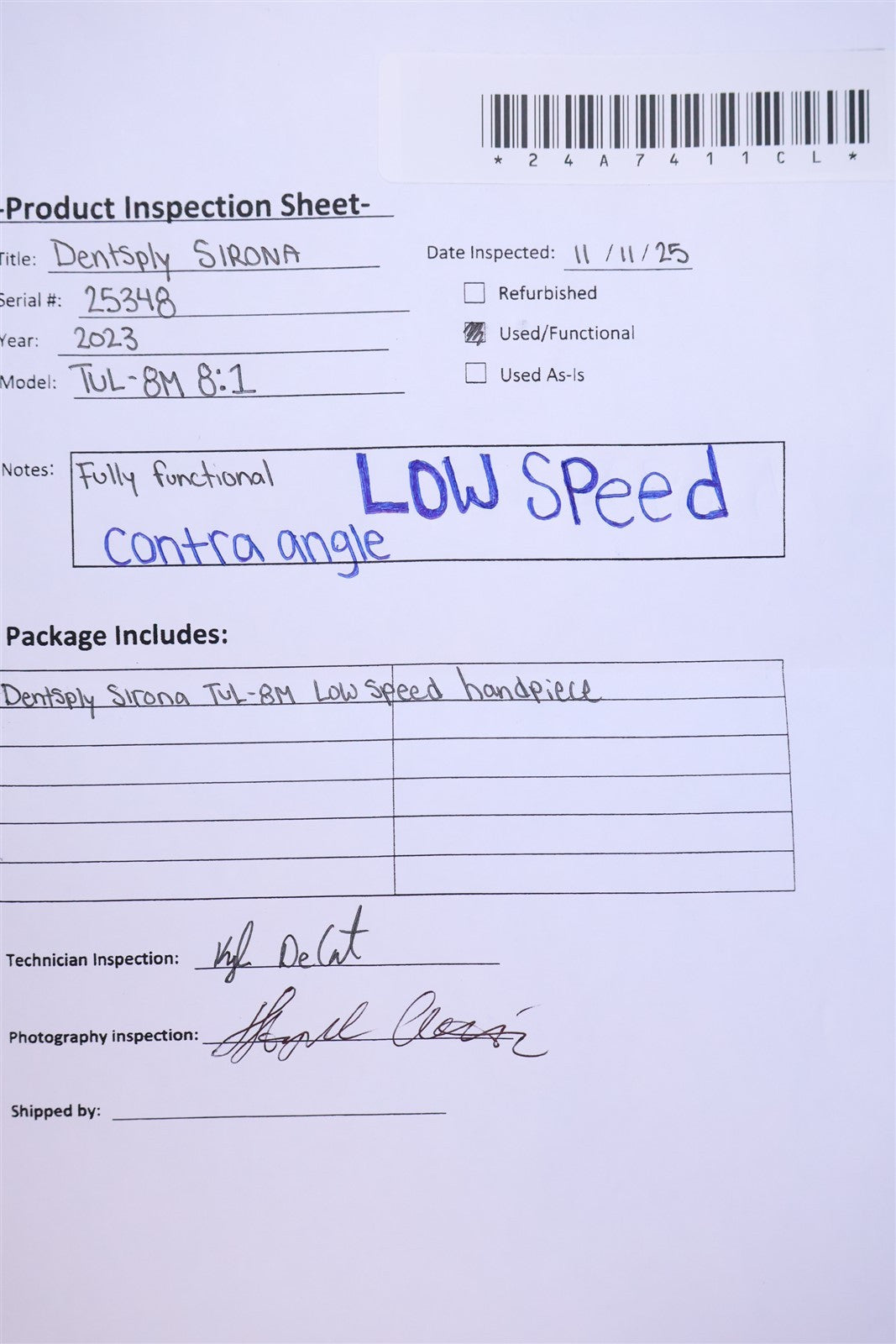 Due to not having required attachments for handpiece, was unable to do a complete functionality test. Visually inspected unit for any abnormalities and damage. Is overall in good condition aside from MINOR wear from prior use. YEAR 2023.