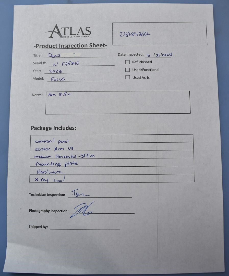 Your purchase will NOT include: - other accessories not shown or listed here.Brand new Dexis Focus with a medium horizontal arm (31.5in) 2023.