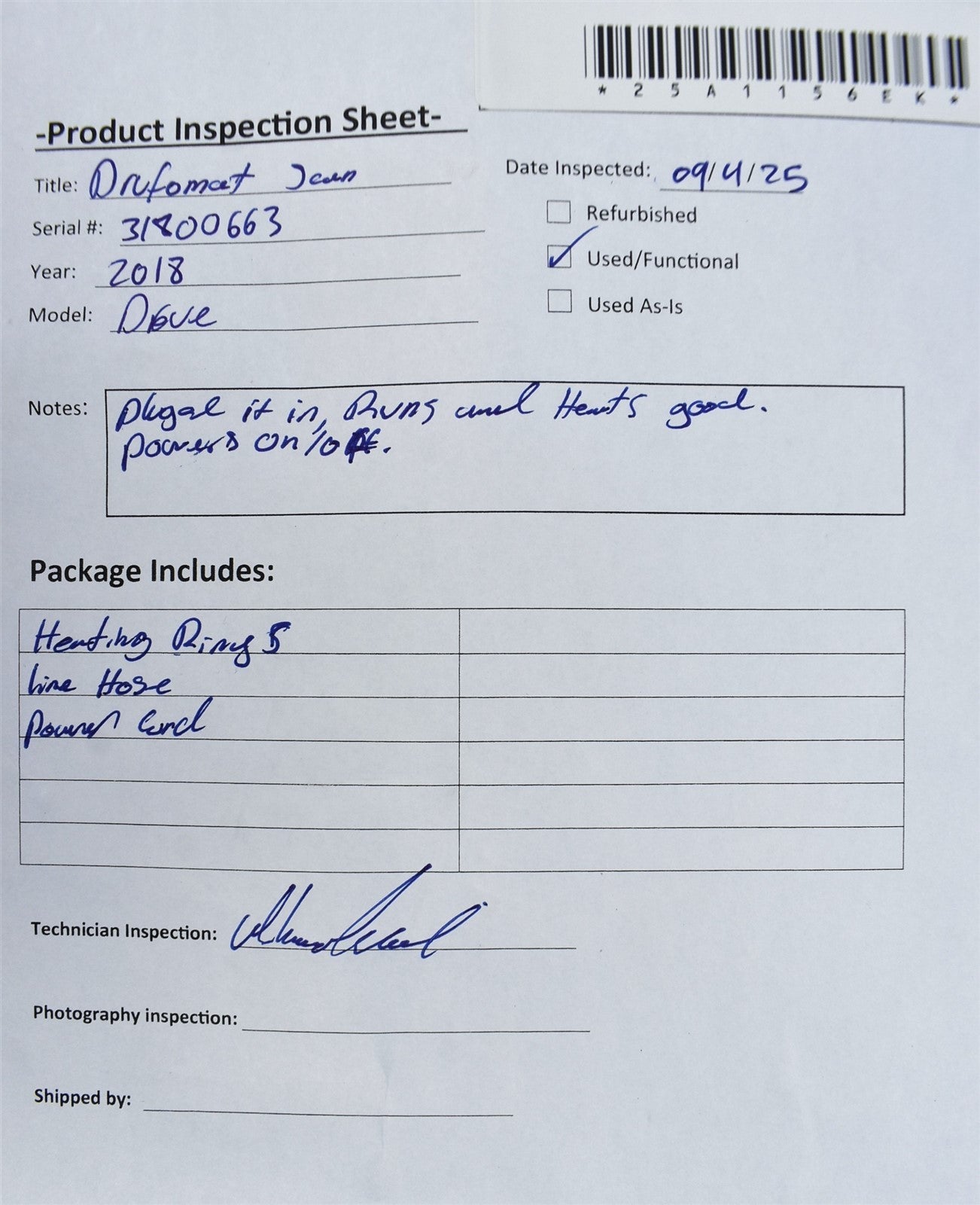 Your purchase will NOT include:This product is pre-owned and may not include the same accessories as a new, unused unit. - other accessories not shown or listed here.I powered on the unit and conducted a thorough visual inspection for any component defects or damage. After running a complete cycle, I confirmed that the unit is fully operational.