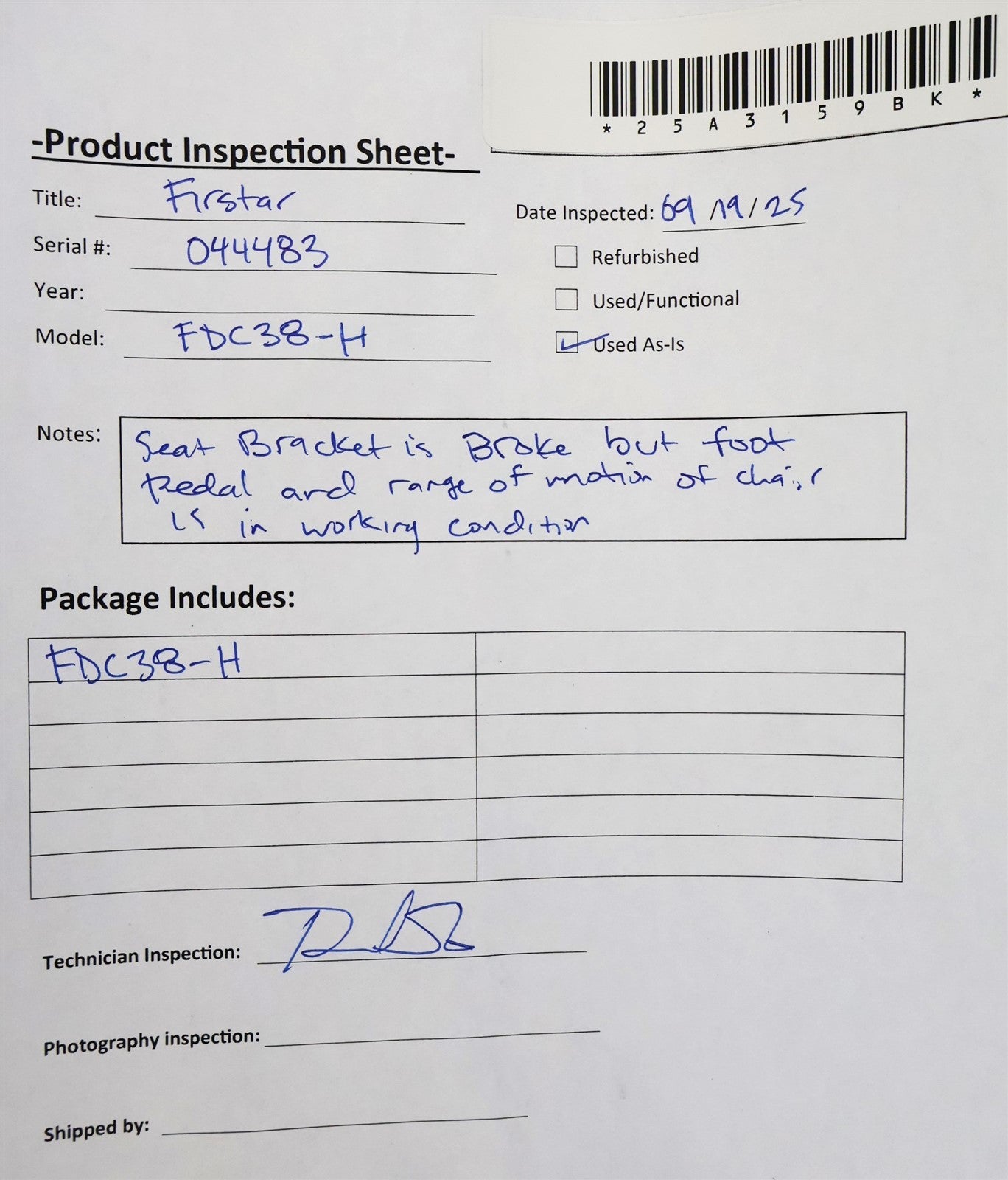 Your purchase will NOT include: - other accessories not shown or listed here.Foot pedal and chair functionality works as intended but the seat bracket is broke