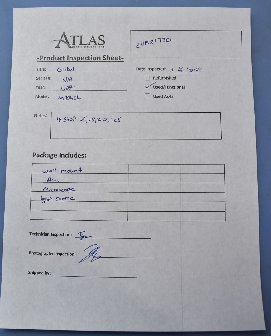 I set this item up and tested. The lens are in great condition, they have no damage or scratches. The light source has 2 halogens lights then can be swapped with the flip of a switch. Both lights were great. This item is a wall mount and is in excellent condition overall. 4 Step: .5 .8 2.0 and 1.25-