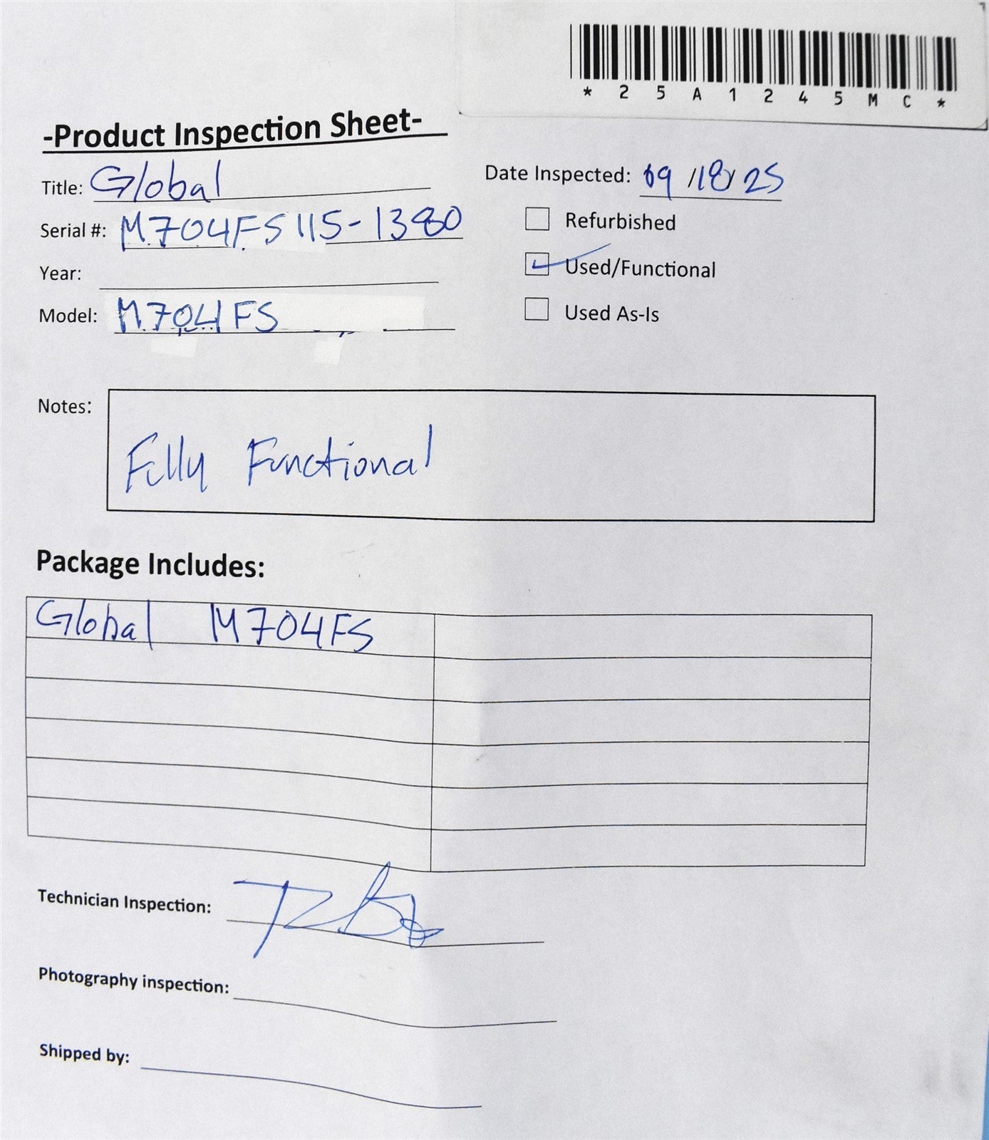 - Serial Number: m704fs115-1380