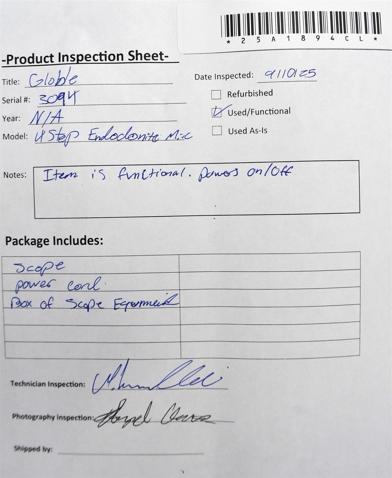 - Serial Number: 3094