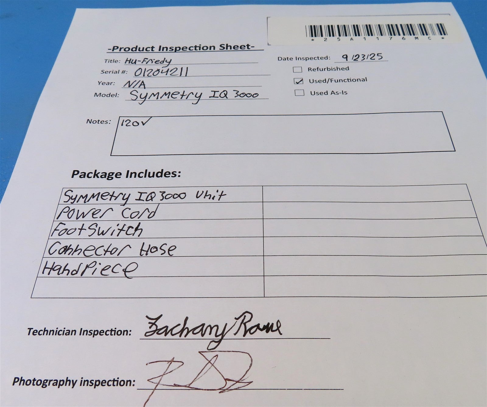 Symmetry IQ 3000 Unit Power Cord Footswitch Connector Hose Handpiece