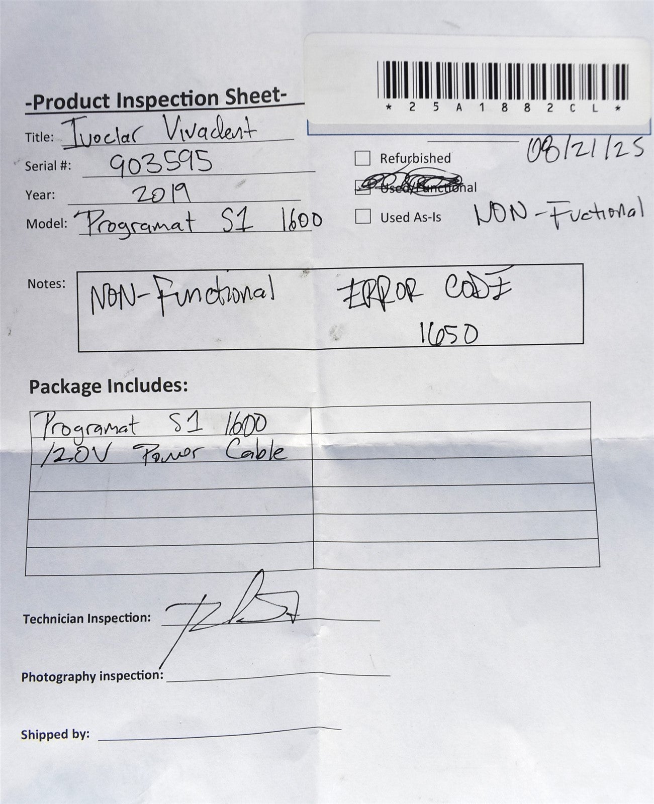 Your purchase will NOT include: - other accessories not shown or listed here. High-performance sintering furnace designed for dental laboratories Maximum temperature of 1600 °C for a wide range of zirconia materials Compact and ergonomic design to save space in the lab User-friendly interface with pre-set and customizable programs Fast sintering cycles to increase efficiency and turnaround time Reliable temperature control for consistent, high-quality results Durable construction engineered for long-term daily operationProgramat keeps giving error code 1650, unit is non functional