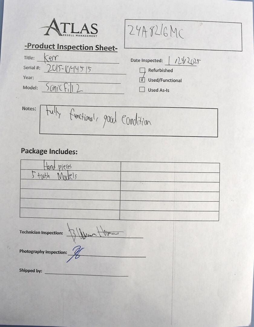 I ran the handpiece with an air compressor to ensure the motor would spin at the proper rate without grinding. This unit is fully functional and in excellent condition without any cosmetic damage. -BH