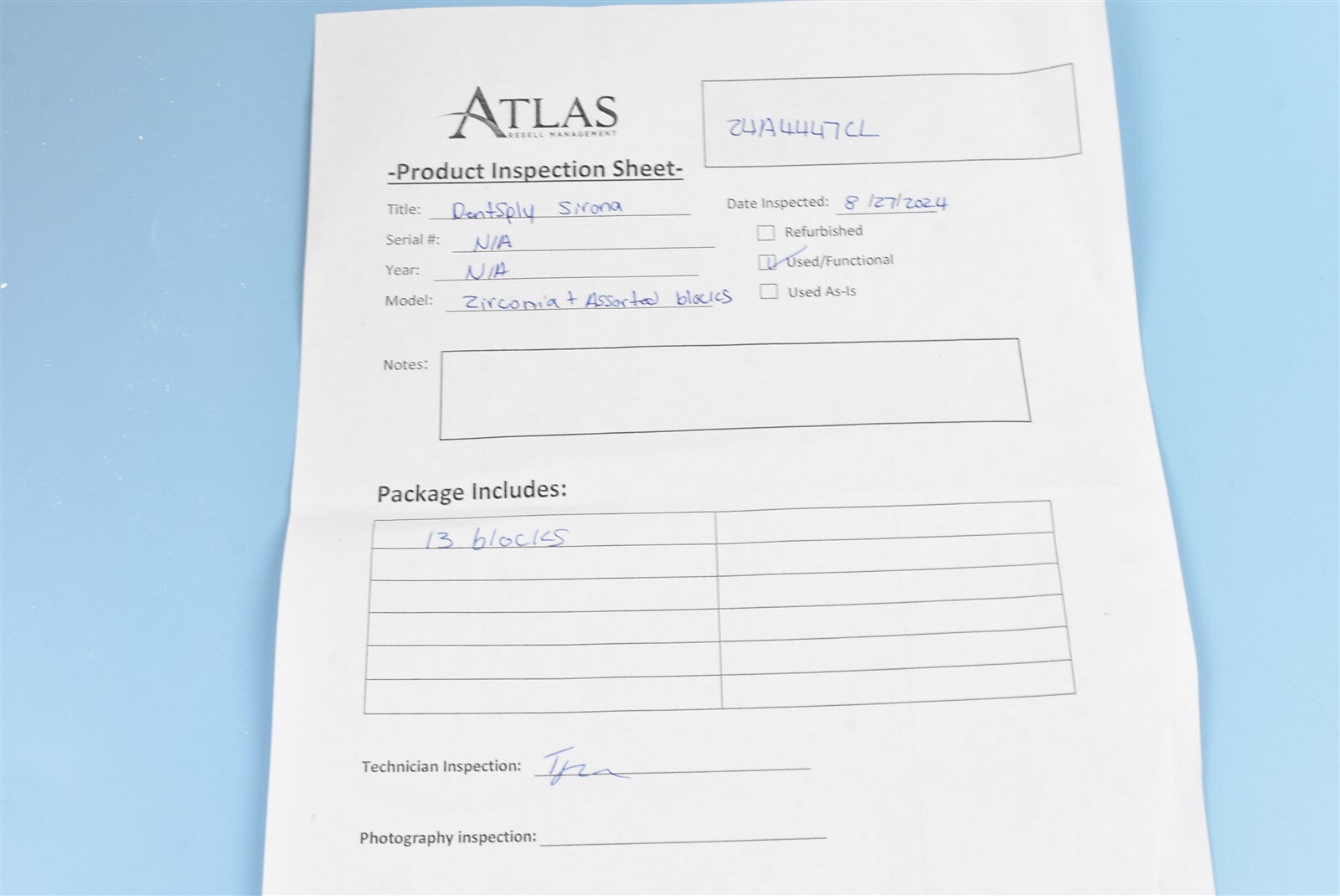 Atlas Resell Management has more experience testing and shipping CEREC and other CAD/CAM units than anyone else on eBay. Just check out the wide selection of CAD/CAM units in our store.We're proud to be the most trusted source for quality used CAD/CAM units in the pre-owned dental equipment market. Your purchase will NOT include: This product is pre-owned and may not include the same accessories as a new, unused unit. - other accessories not shown or listed here.Lot of 13 Individual Blocks: (3) 14Z/ A1, (2) 14Z/ A3, (3) 14Z/ A3.5, (2) 14Z/ C2, (1) 12Z/ D2, (2) 14ZL/ C1