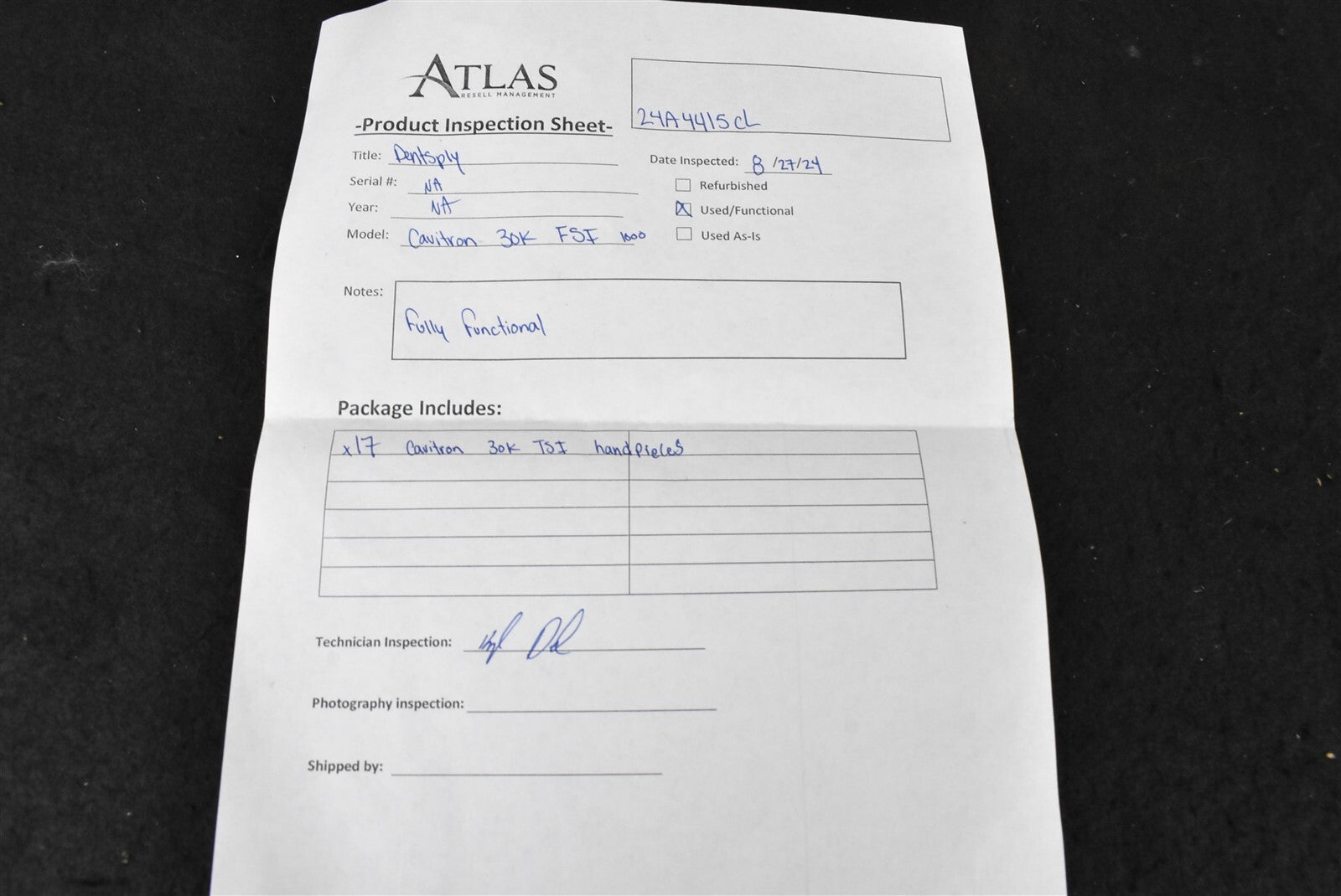 Visually inspected each individual handpiece to ensure free of damage. Due to not have required attachments to function test these handpieces, was unable to do a complete functionality test. Handpieces are in good cosmetic condition. FULLY FUNCTIONAL.
