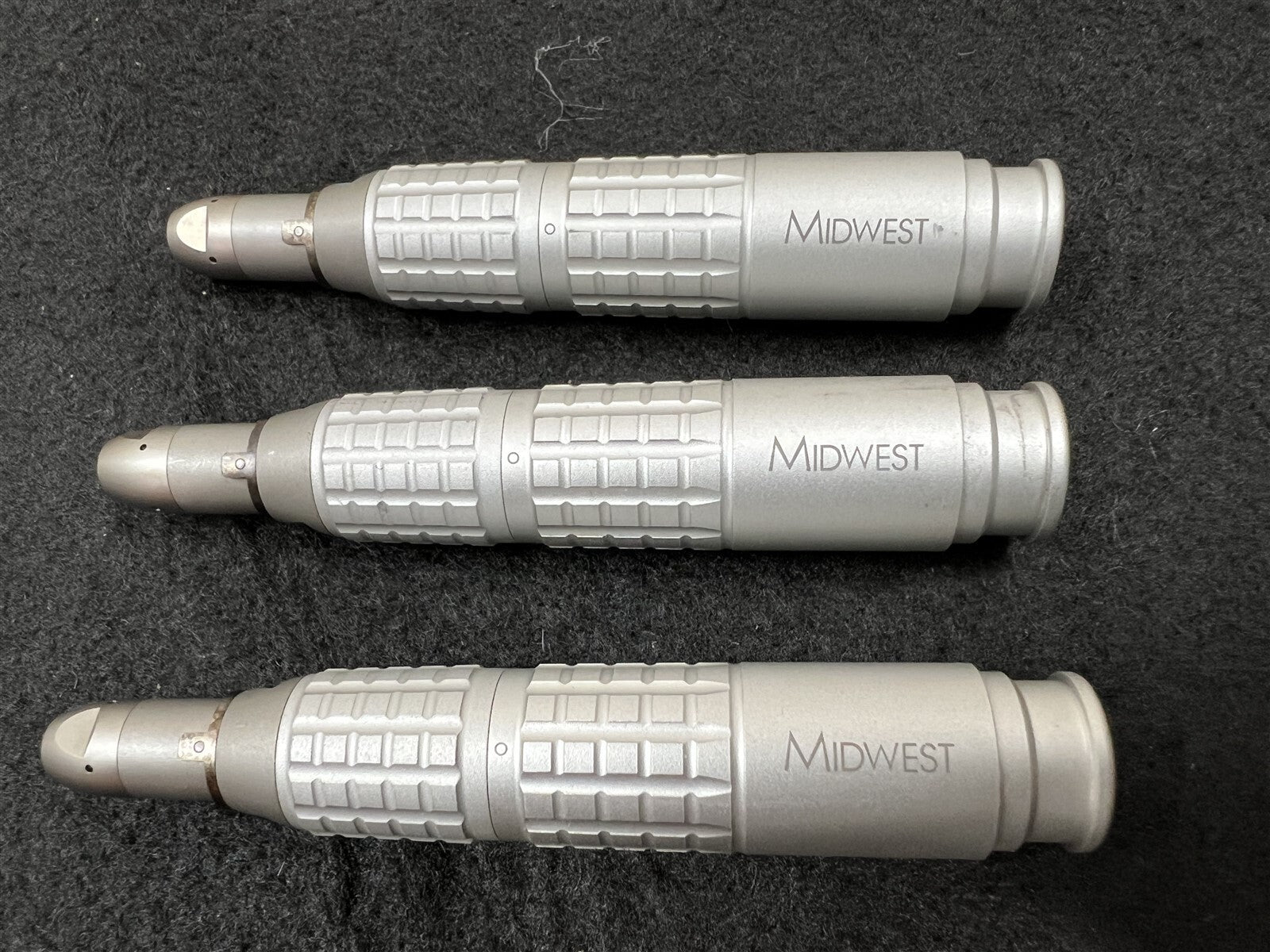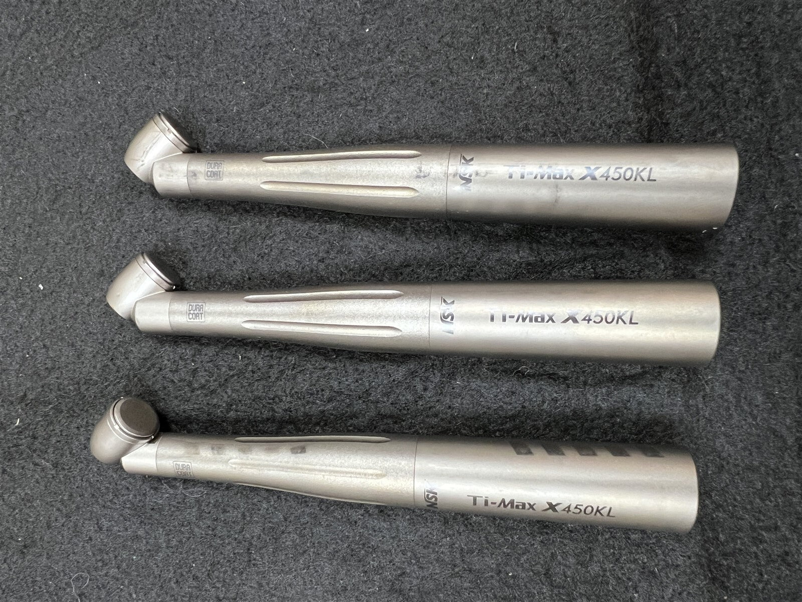 (3) Midwest Rhino XP Motors, (3) Midwest Contra Angle Sheaths, (2) Midwest 6-Pin LED XGT KS6, (3) Midwest Stylus Plus SPK, (3) NSK Ti-Max X450KL (3) Midwest Straight Nosecone