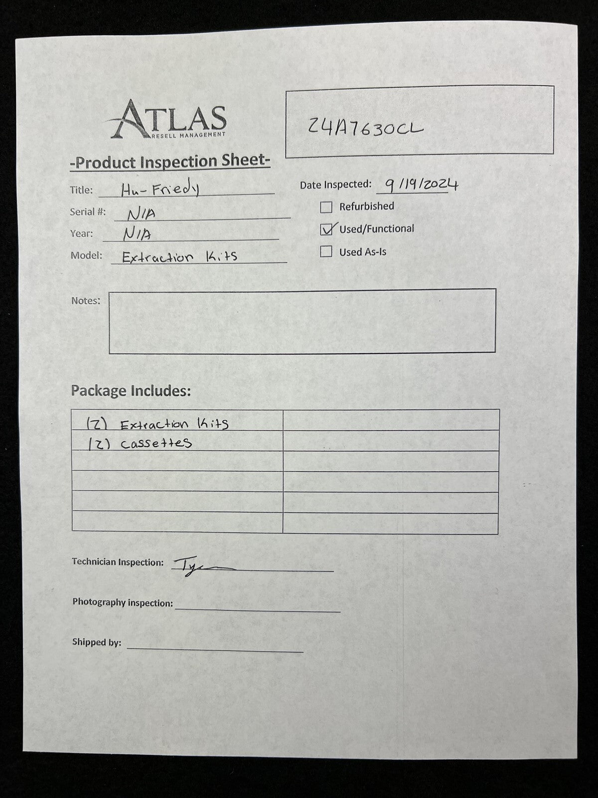 Your purchase will NOT include: This product is pre-owned and may not include the same accessories as a new, unused unit. - other accessories not shown or listed here.Lot of 2 Extraction kits with cassettes, all in excellent condition.