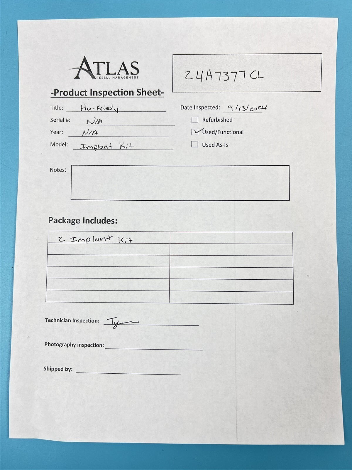 Your purchase will NOT include: This product is pre-owned and may not include the same accessories as a new, unused unit. - other accessories not shown or listed here.2 implant Hu-Friedy Kits in good condition with cassettes.