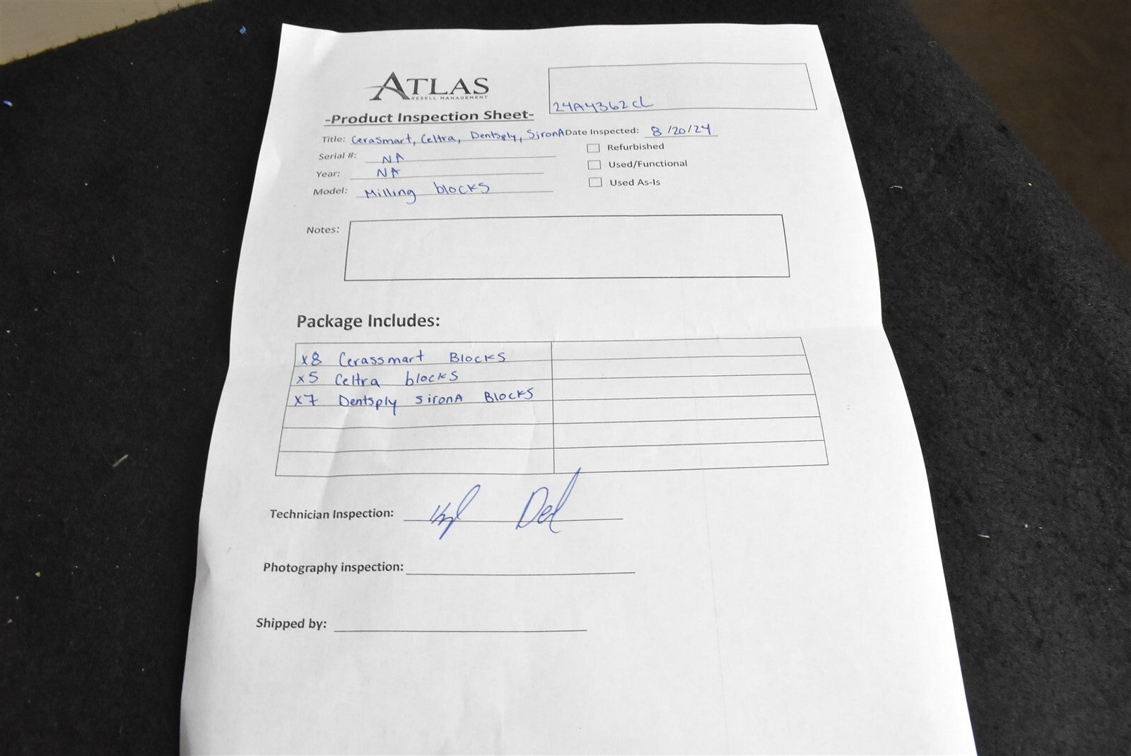 Atlas Resell Management has more experience testing and shipping CEREC and other CAD/CAM units than anyone else on eBay. Just check out the wide selection of CAD/CAM units in our store.We're proud to be the most trusted source for quality used CAD/CAM units in the pre-owned dental equipment market. Your purchase will NOT include: This product is pre-owned and may not include the same accessories as a new, unused unit. - other accessories not shown or listed here.Lot of 20: Cerassmart- (4) A2 LT 14L/ (4) A1 LT 14L, Celtra- (2) LT A1 C14/ (2) LT A2 C14/ (1) LT A3 C14, Dentsply Sirona- (2) Tessera MT A1 C14, (3) MT A2 C14, (2) MT C1 C14