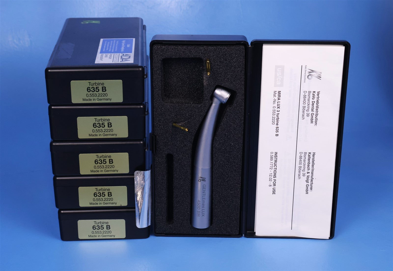 Impact Air 45 - 4; SybronEndo 18:1 - 4; KaVo 635B - 8; KaVo 20LP - 5; KaVo M8700L - 4; KaVo 4500BR - 2; KaVo M4500L - 1; MULTIflex 465LRN - 2; NSK Endo Head F16R - 5; Brasseler Endo Head - 5; Lares High Speed - 2; Handpiece Head 68LH - 3 ; Handpiece Wrenches - 2