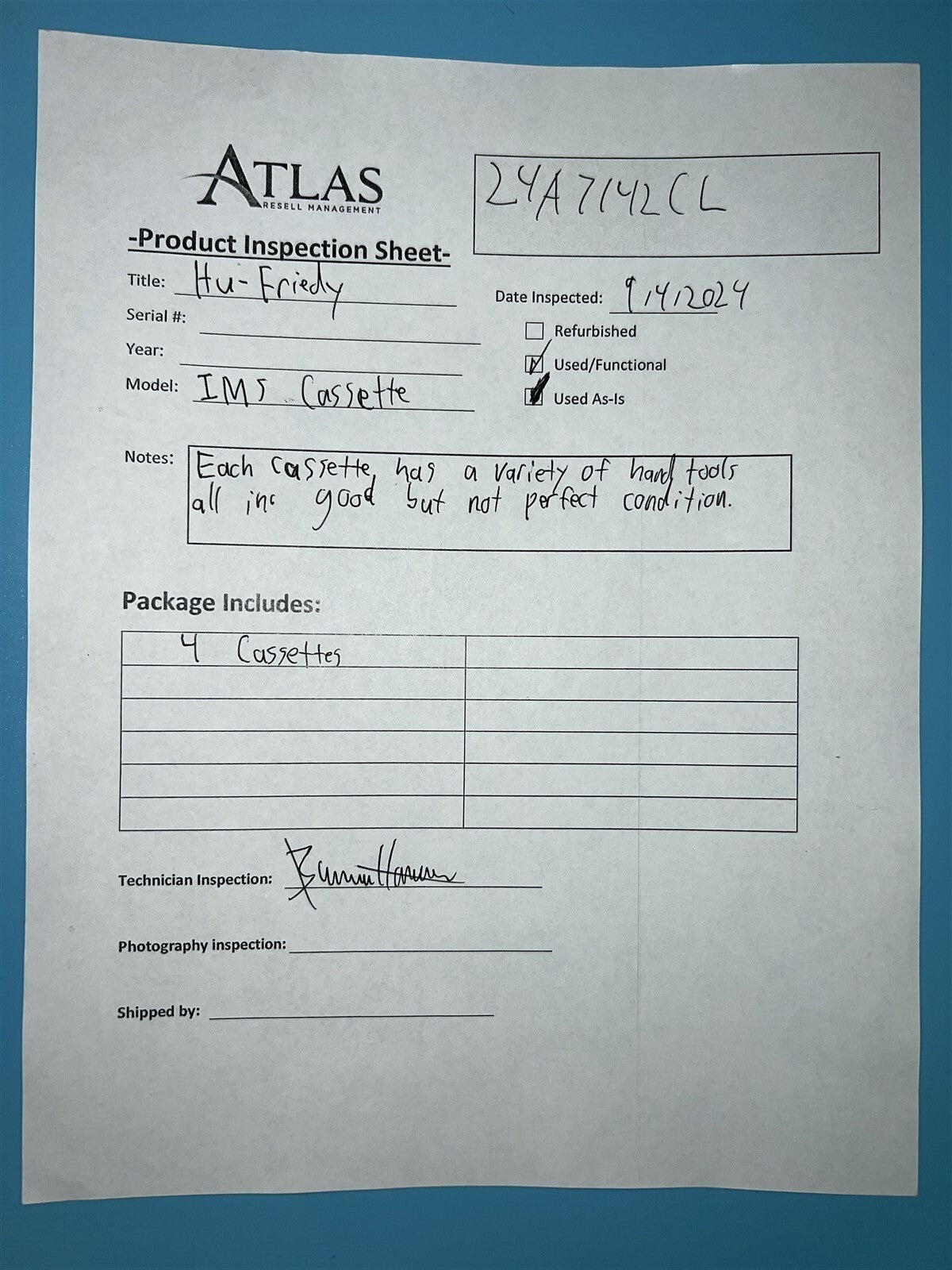 Visually Inspected, tools were in overall good condition, with some having burn marks and white stains