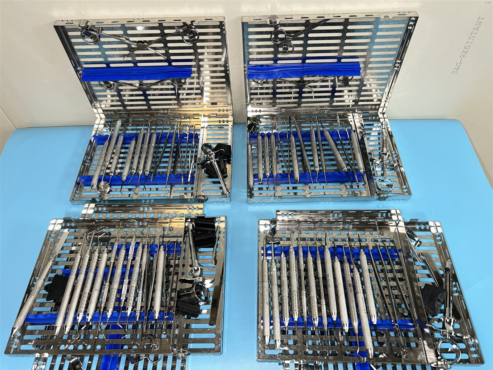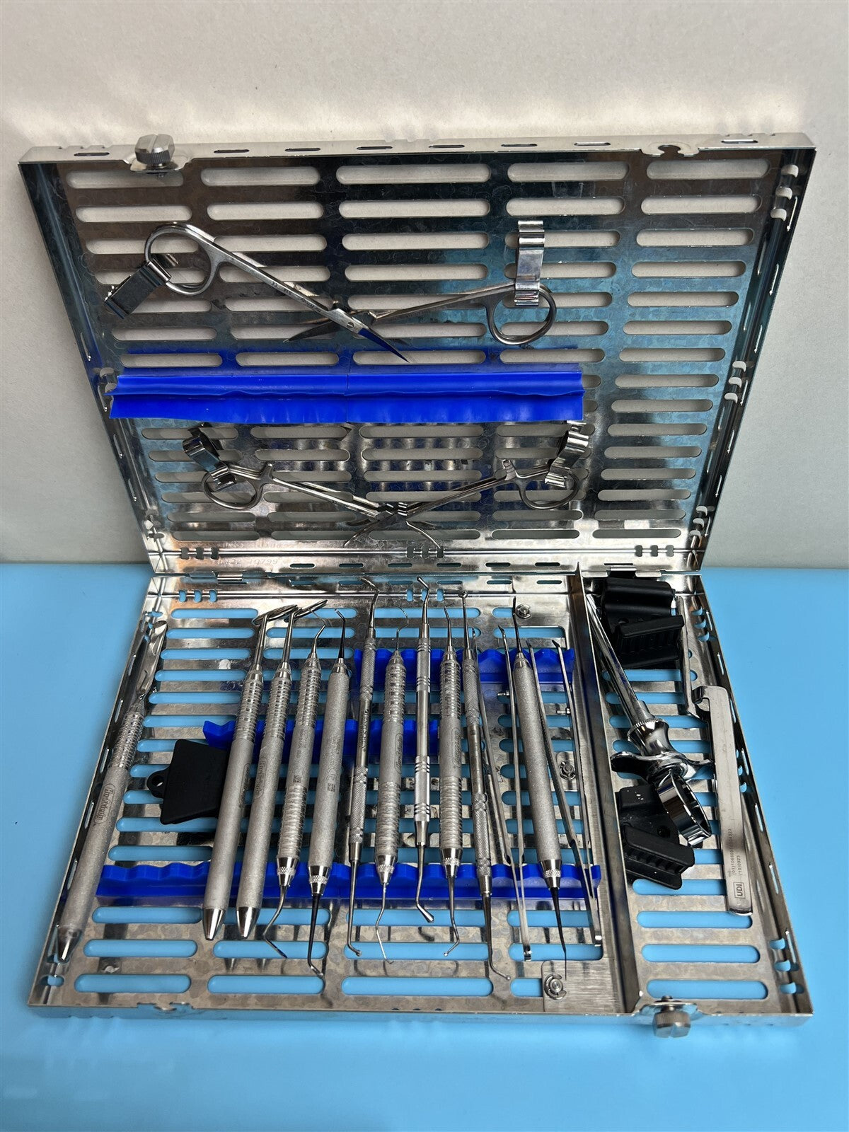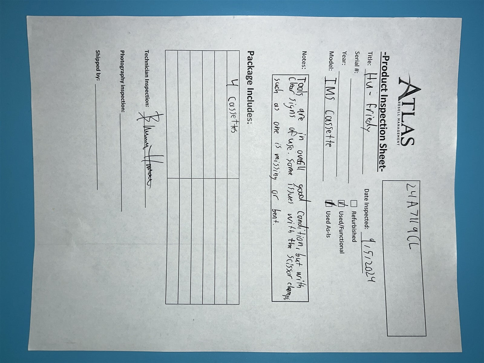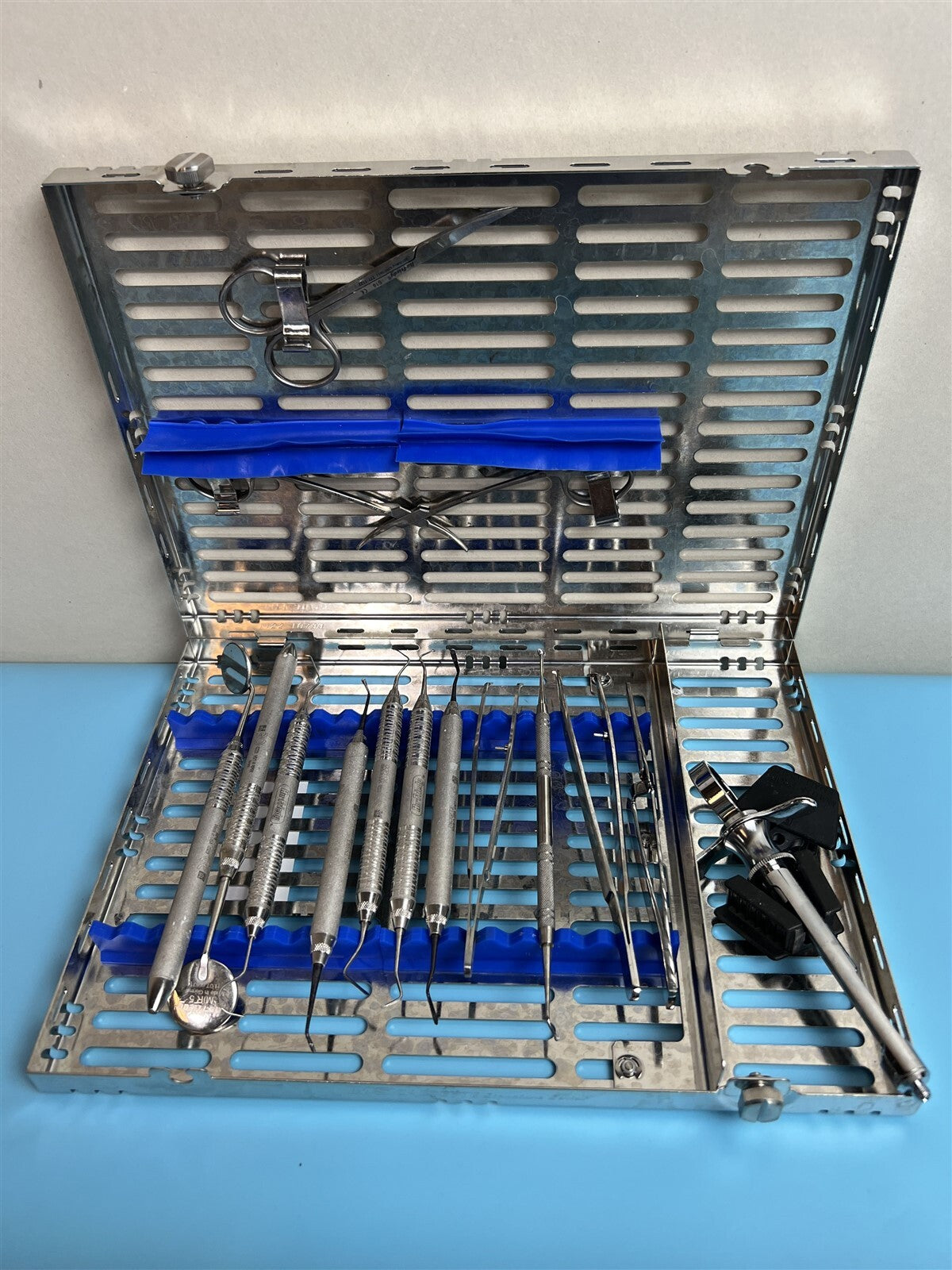 Visual Inspection, Tools were in overall good condition, several had burn marks and white marks, and there were some cassettes missing a scissor clamps and one with a bent scissor clamp that was hanging loosely.