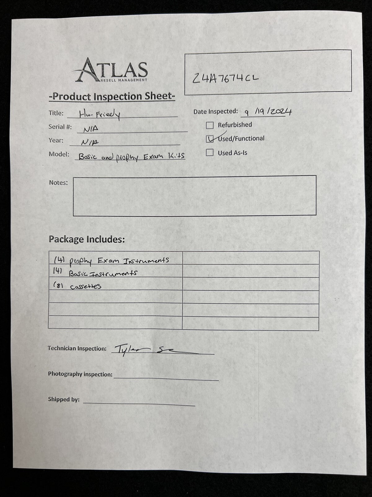 4 Basic instrument kits, 4 prophy exam kits, 8 cassettes total.