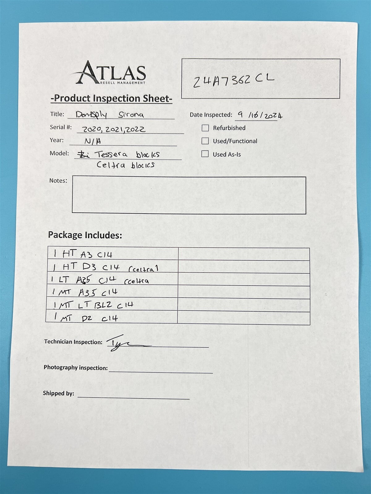 Atlas Resell Management has more experience testing and shipping CEREC and other CAD/CAM units than anyone else on eBay. Just check out the wide selection of CAD/CAM units in our store.We're proud to be the most trusted source for quality used CAD/CAM units in the pre-owned dental equipment market. Your purchase will NOT include: This product is pre-owned and may not include the same accessories as a new, unused unit. - other accessories not shown or listed here.Lot of 4 Tessera: (1) MT D2 C14, (1) MT A3.5 C14, (1) HT A3 C14, (1) MT LT BL2 C14// Lot of 2 Celtra: (1) LT A3.5 C14, (1) HT D3 C14