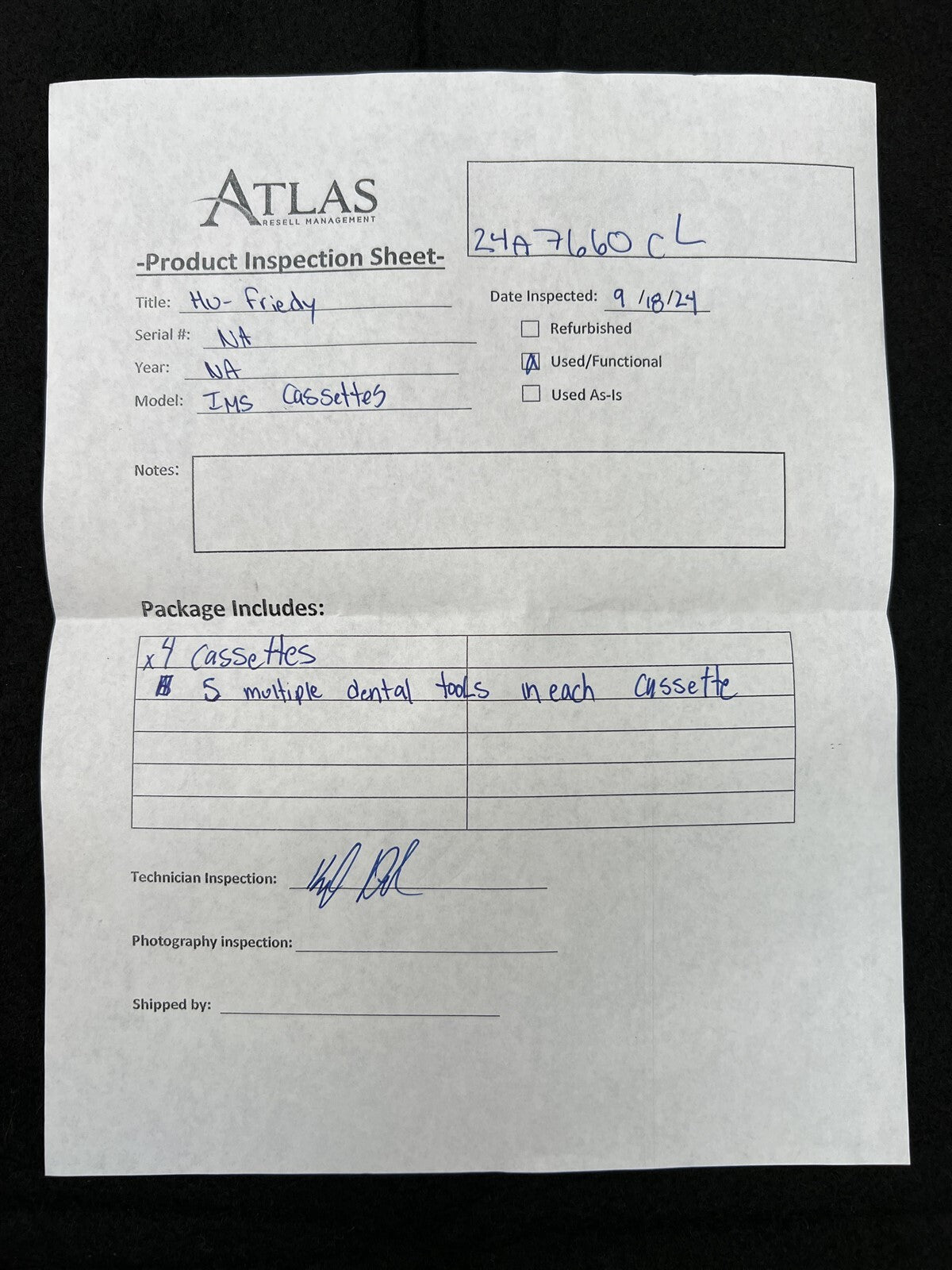 Your purchase will NOT include: This product is pre-owned and may not include the same accessories as a new, unused unit. - other accessories not shown or listed here.Visually inspected all four cassettes by opening each one and looking at each tool within. No significant damage or cosmetic damage.