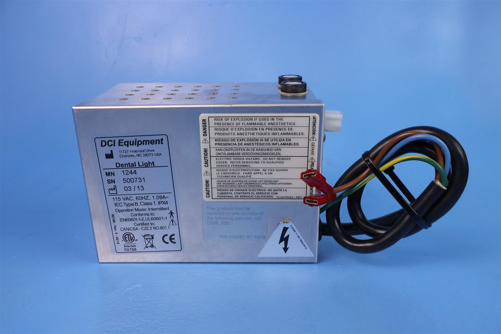 Marus DCI1704 dental chair, DCI exam light, water bottle, junction box, auto transformer box for light.