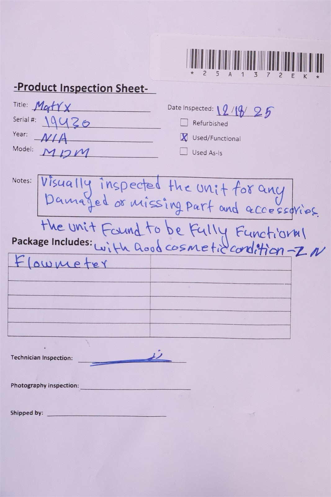 Visually inspected the unit for any damaged or missing parts and accessories. Function tested the unit and found it to be fully functional with good cosmetic condition.