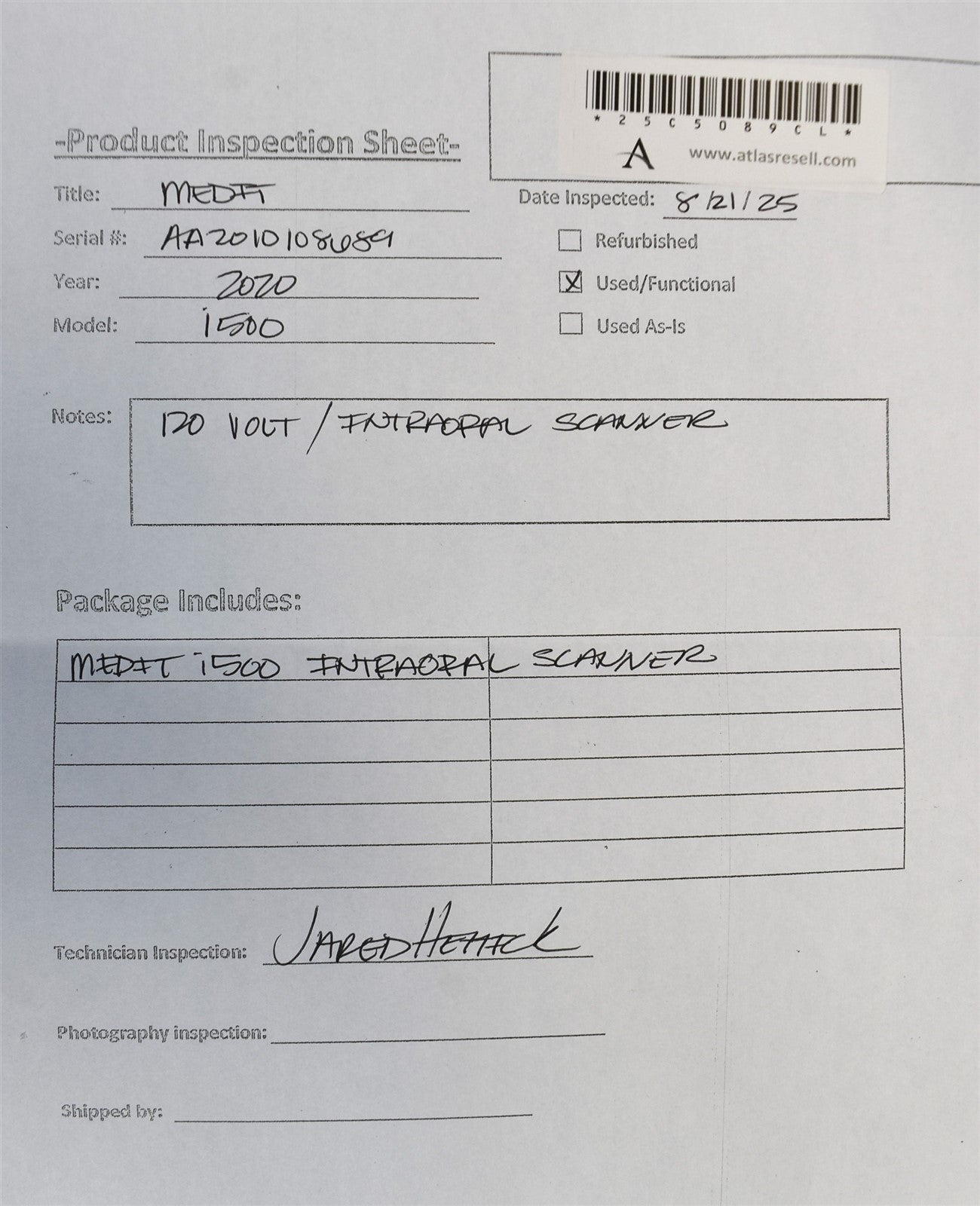 Atlas Resell Management has more experience testing and shipping CEREC and other CAD/CAM units than anyone else on eBay. Just check out the wide selection of CAD/CAM units in our store.We're proud to be the most trusted source for quality used CAD/CAM units in the pre-owned dental equipment market. Your purchase will NOT include:Power supplyThis product is pre-owned and may not include the same accessories as a new, unused unit. - other accessories not shown or listed here.Medit i500 Intraoral Scanner was powered on (USB) , Blue light came on. Fan is running. Inspection Result: - Ready for Resale.