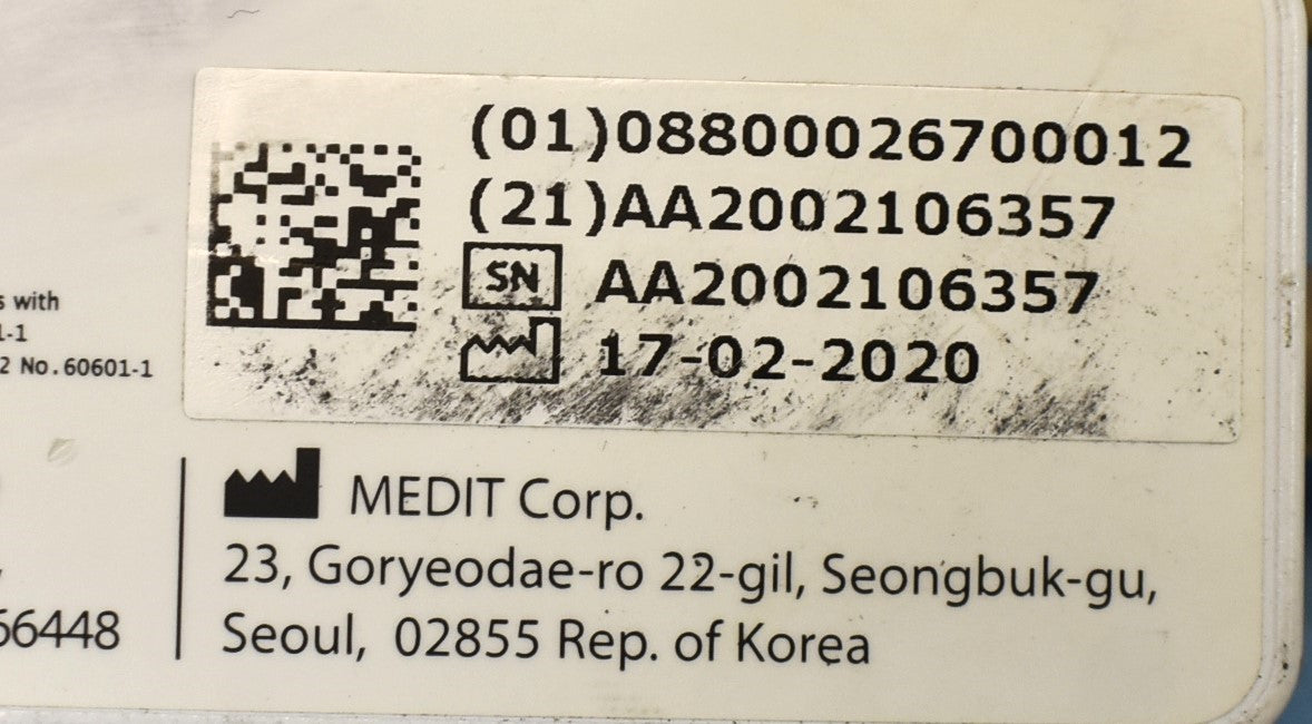 Medit i500 Intraoral Scanner was powered on (USB) , Blue light came on. Fan is running. Inspection Result: - Ready for Resale.