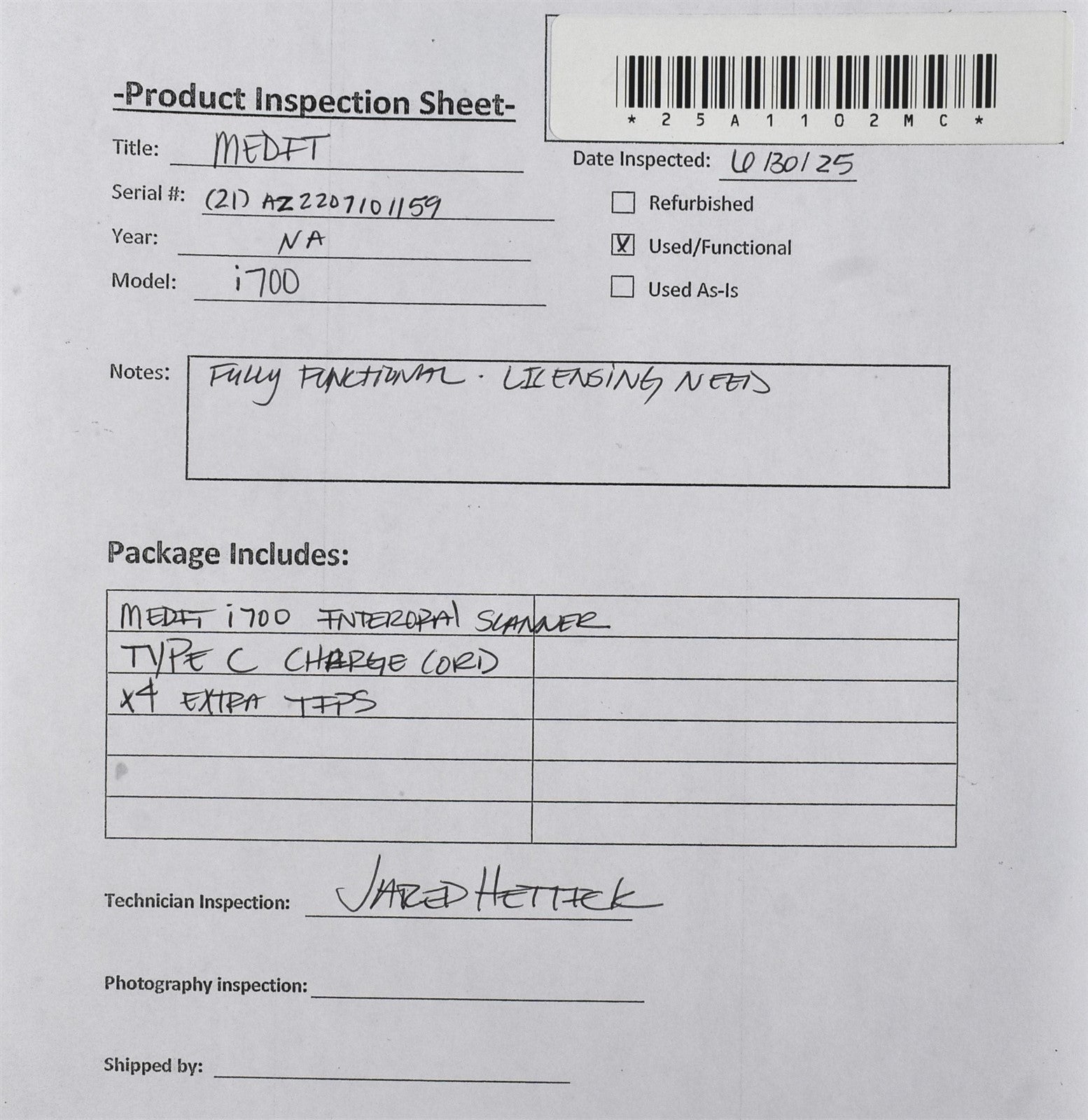 Medit i700 Interoral scanner, Type C power cord, x4 tips.