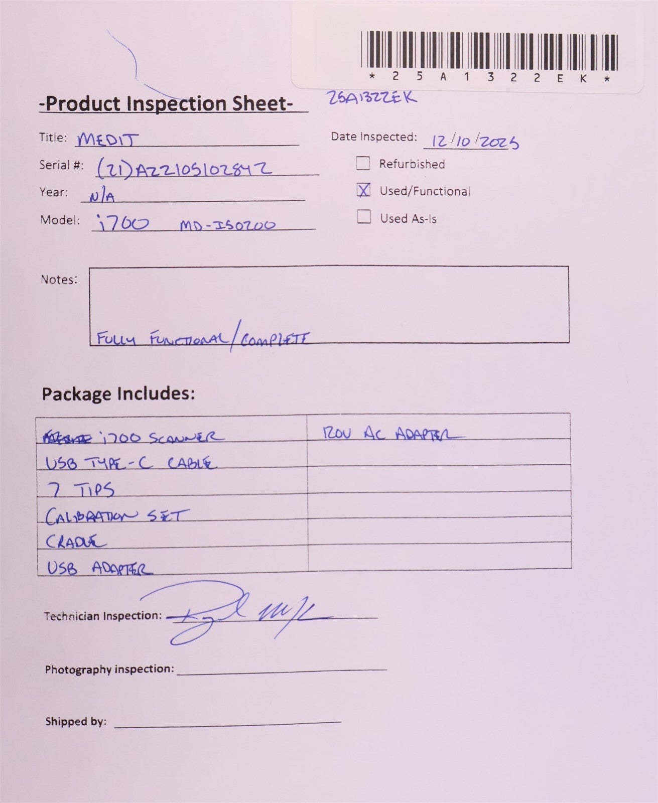 Medit i700 Scanner, Cradle, 7 Tips, Calibration Set, AC Power Adapter, USB Adapter,
