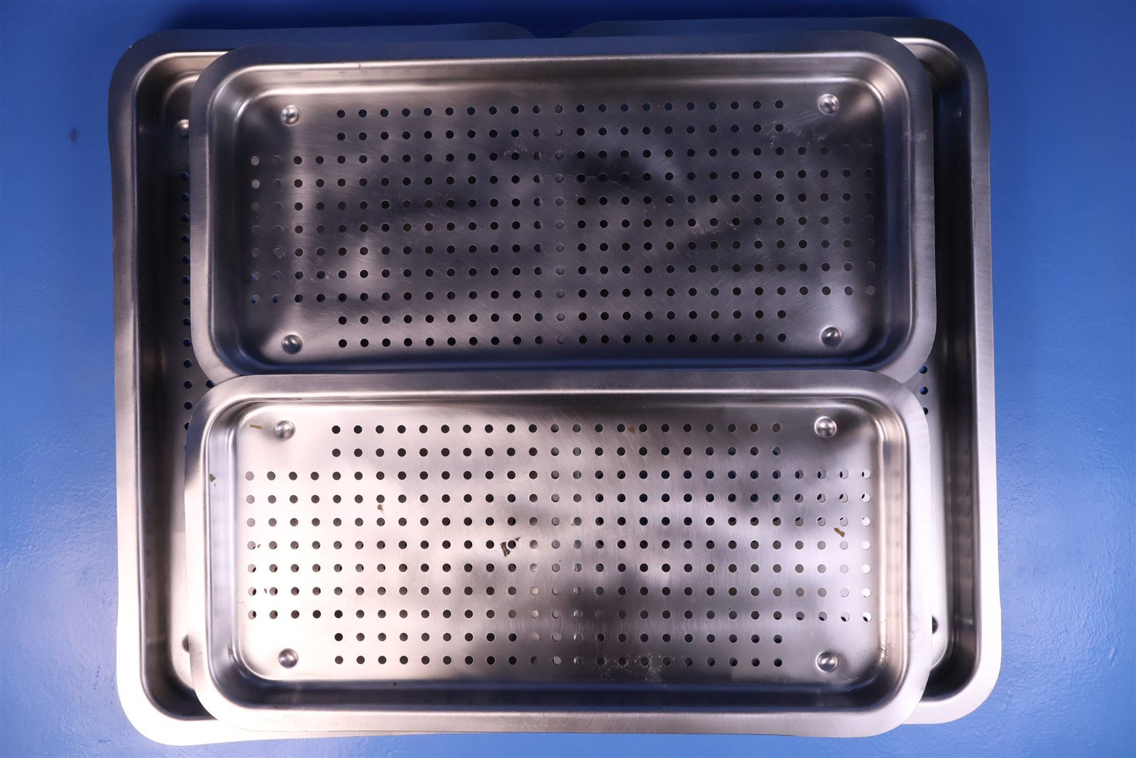 Your purchase will NOT include: - other accessories not shown or listed here.Prior to testing this autoclave, it was disassembled down to the bare chassis, cleaned, rebuilt and refurbished. Removed and rebuilt the Door Latch assembly. Cleaned Reservoir Tank and installed a new Drain Hose and Condenser Coil. Installed a new Fill / Vent Valve Manifold Assembly and Air Valve Solenoid. Installed a new Door Gasket, Dam Gasket, Heating Element, and Mesh Water Filters. Installed a new Keypad. Cleaned the Sterilizing Trays and Rack. Then proceeded to test the sterilizer. Connected it to a 120 volt power source, added distilled water and ran the autoclave through all it's preset sterilizing and drying cycles. To verify that this autoclave is achieving it's required maximum sterilizing temperature, it was temperature tested using a Max Register Thermometer, and found to reach 273 F for an entire cycle