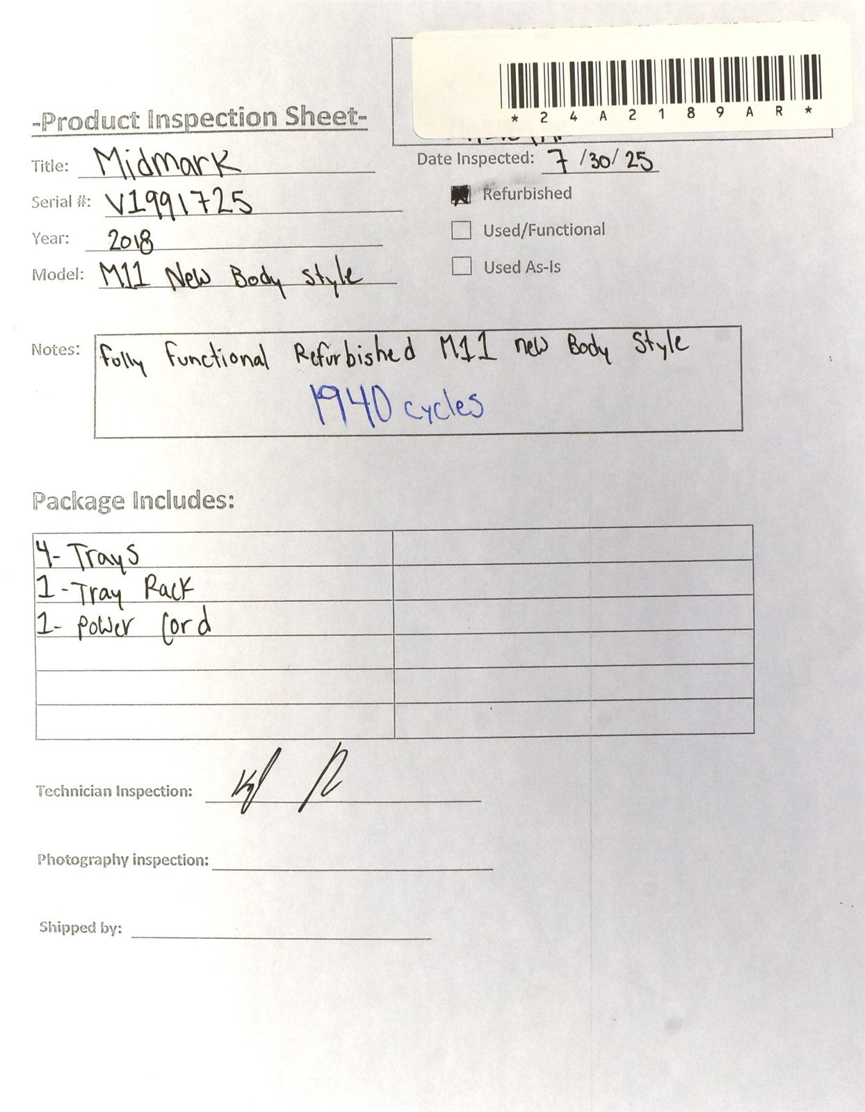 • Serial Number: V1991725
