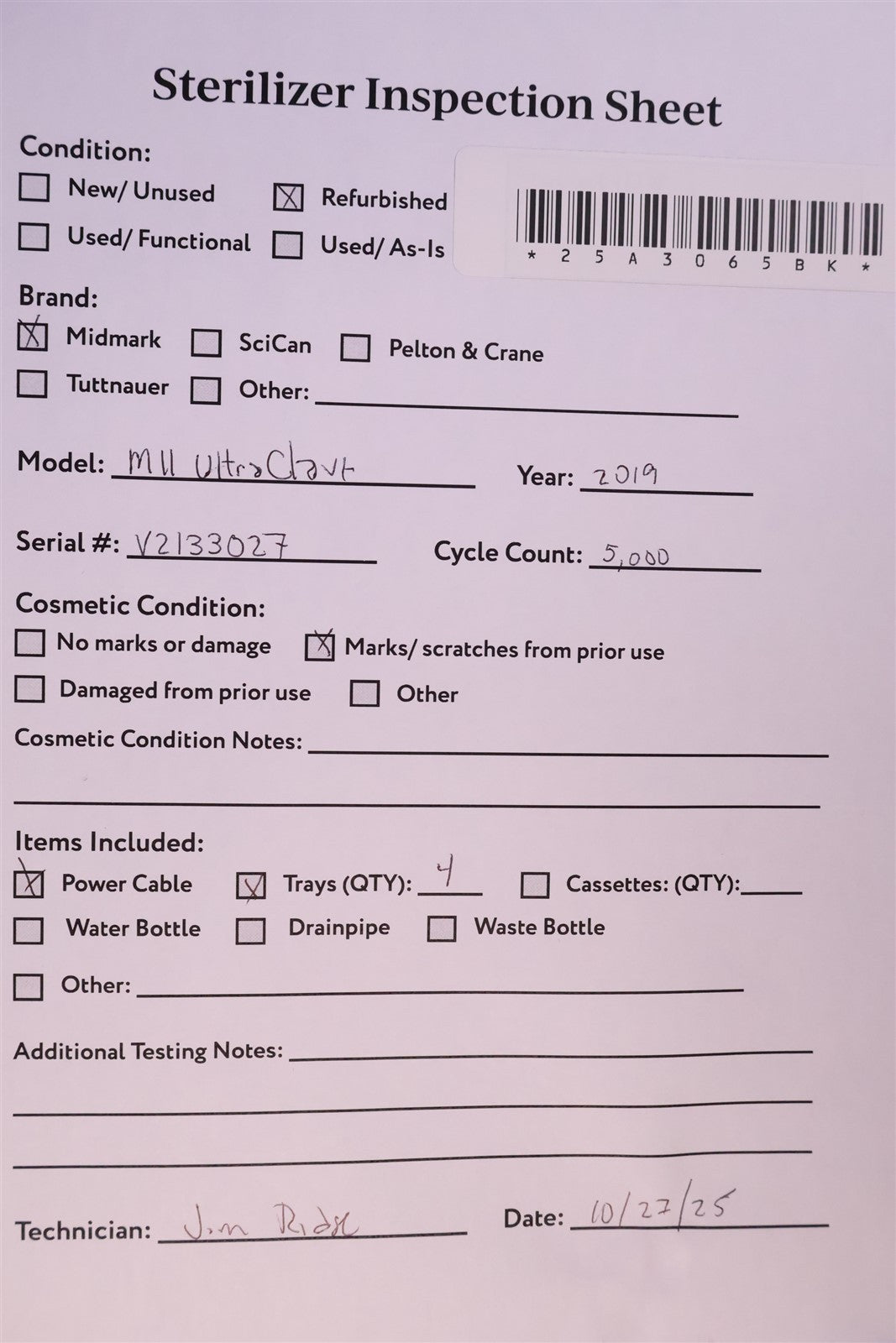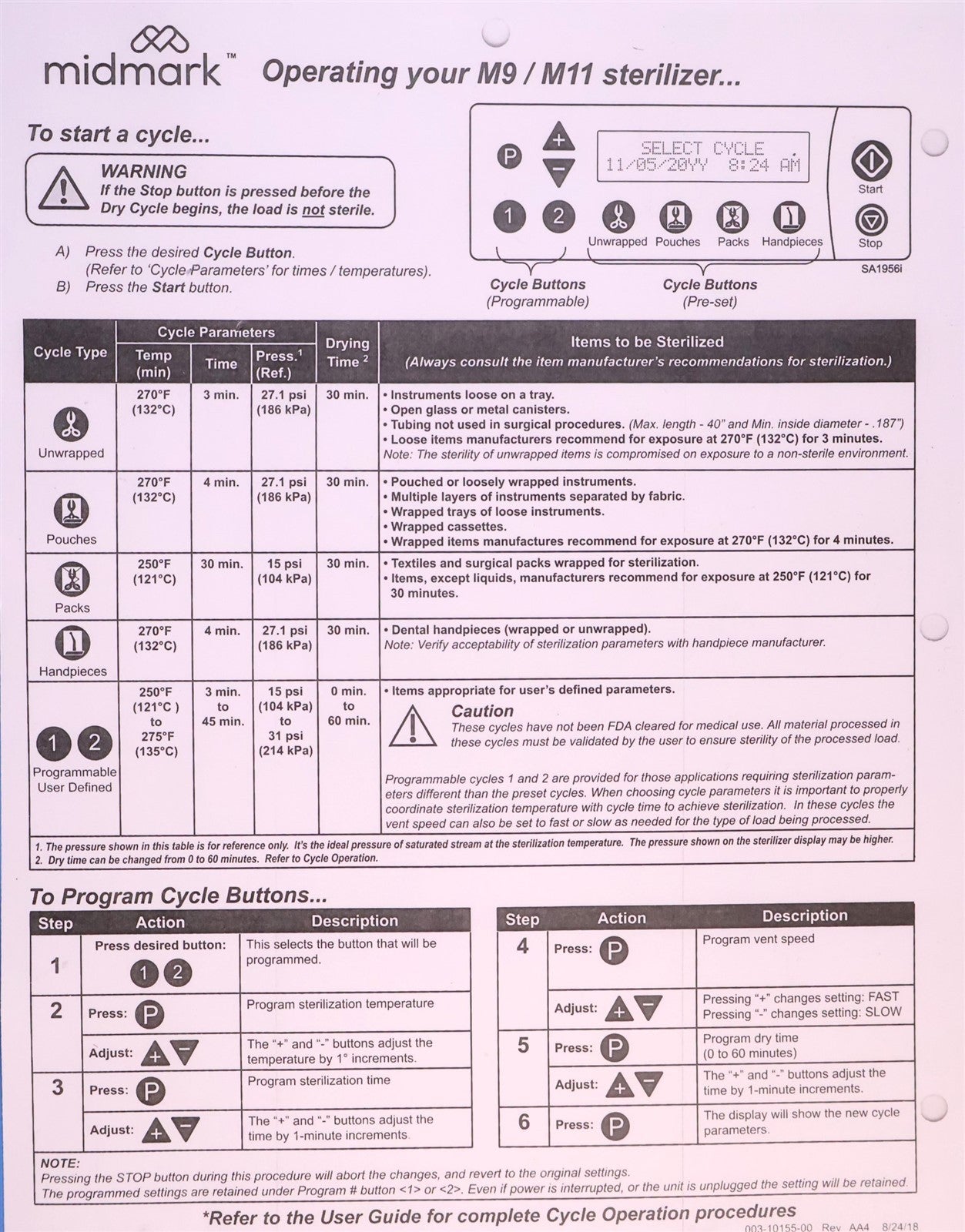 1 - Midmark M11 Automatic Autoclave 4 - Sterilizing Trays w/ Rack 1 - Power Cord