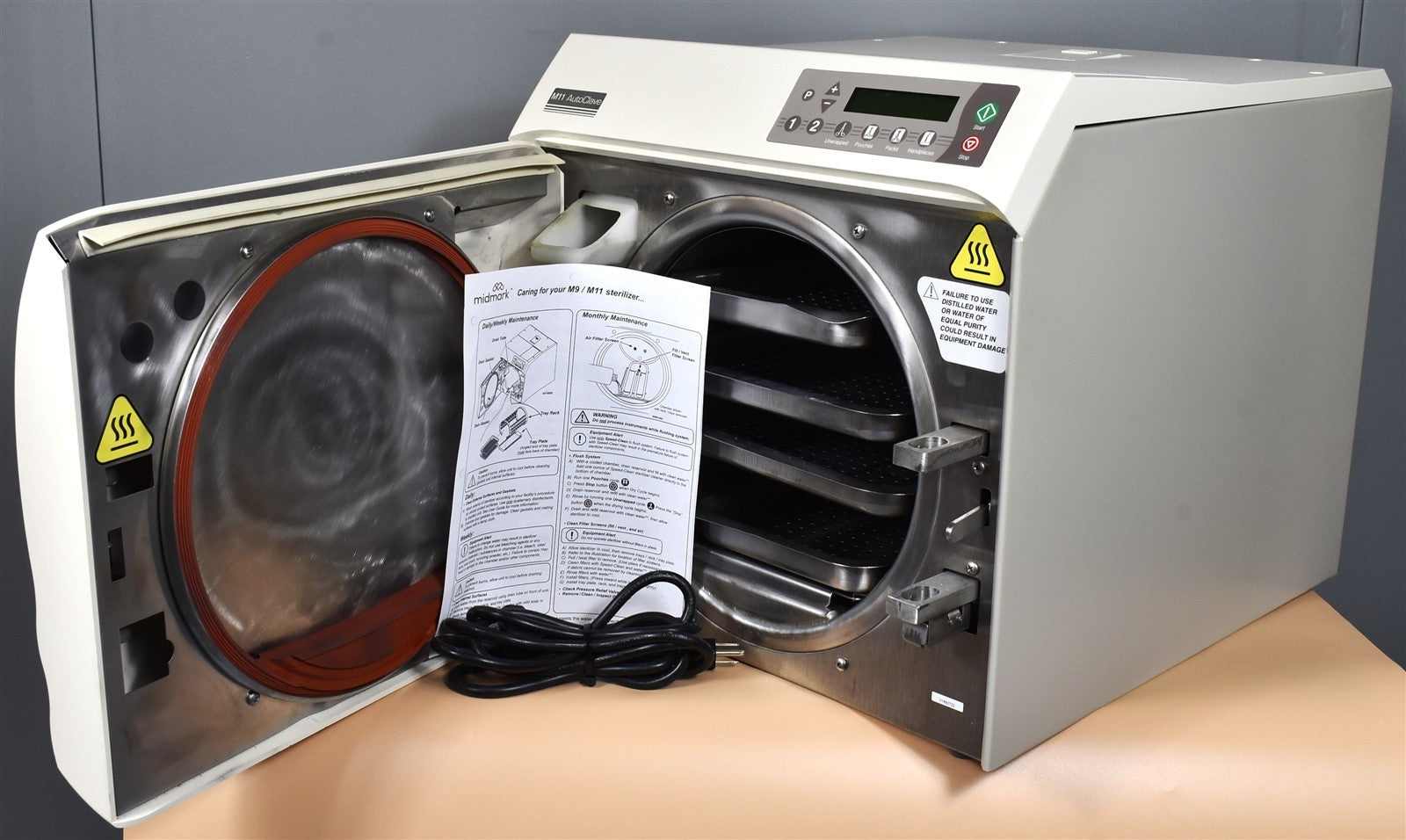 Your purchase will NOT include: - other accessories not shown or listed here.Prior to testing this autoclave, it was disassembled down to the bare chassis, cleaned, rebuilt and refurbished. Removed and rebuilt the Door Latch assembly. Cleaned Reservoir Tank and installed a new Drain Hose and Condenser Coil. Installed a new Fill / Vent Valve Manifold Assembly and Air Valve Solenoid. Installed a new Door Gasket, Dam Gasket, Heating Element, and Mesh Water Filters. Installed a new Keypad. Cleaned the Sterilizing Trays and Rack. Then proceeded to test the sterilizer. Connected it to a 120 volt power source, added distilled water and ran the autoclave through all it's preset sterilizing and drying cycles. To verify that this autoclave is achieving it's required maximum sterilizing temperature, it was temperature tested using a Max Register Thermometer, and found to reach 273 F for an entire cycle.