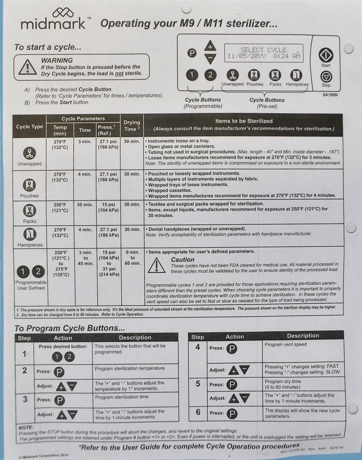 Midmark Ritter M11 Dental Medical Sterilizer REFURBISHED w/ 1 YEAR WARRANTY