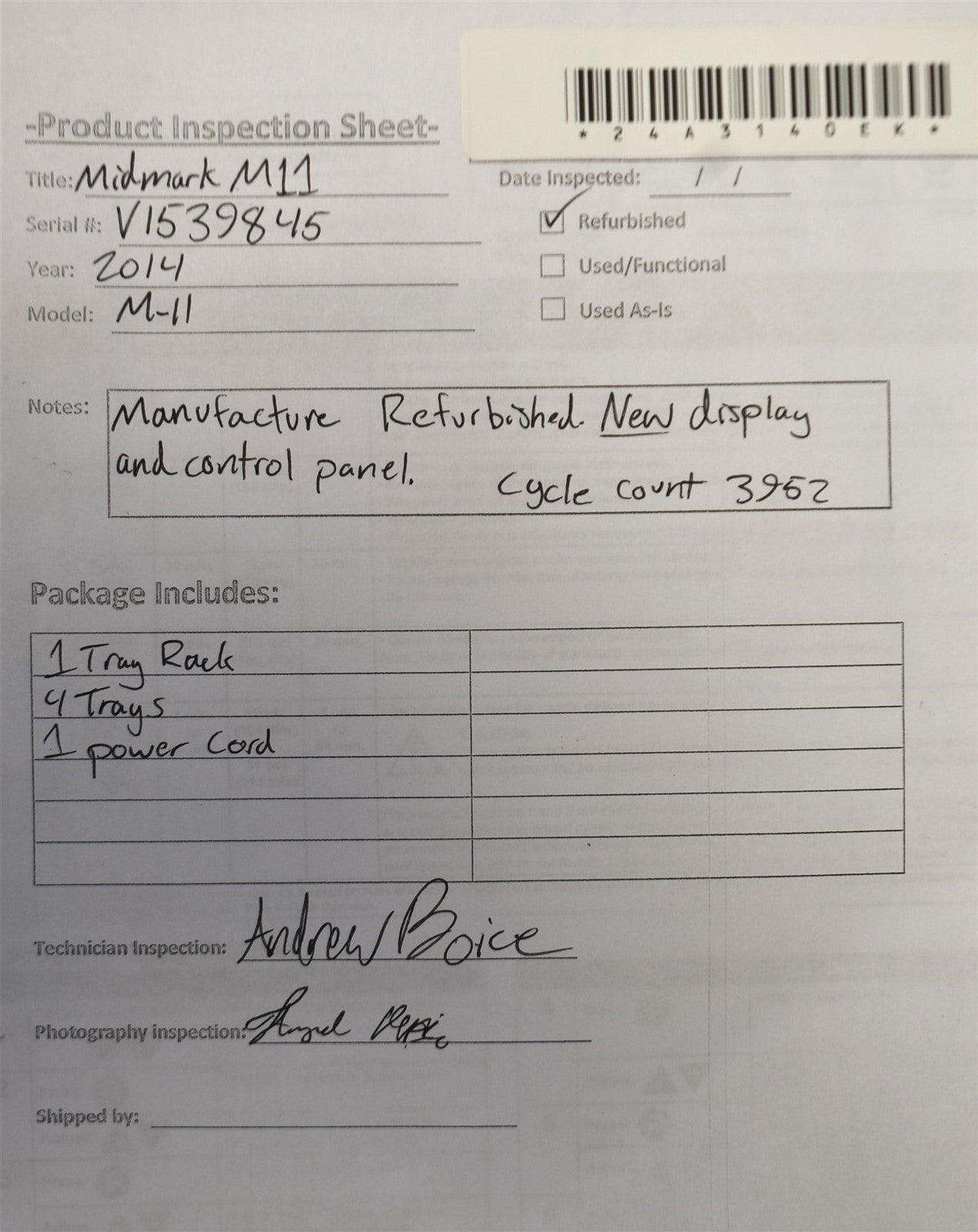 M11 NEW BODY Prior to testing this autoclave, it was disassembled down to the bare chassis, cleaned, rebuilt and refurbished. Removed and rebuilt the Door Latch assembly. Cleaned Reservoir Tank and installed a new Drain Hose and Condenser Coil. Installed a new Fill / Vent Valve Manifold Assembly and Air Valve Solenoid. Installed a new Door Gasket, Dam Gasket, Heating Element, and Mesh Water Filters. Installed a new Keypad. Cleaned the Sterilizing Trays and Rack. Then proceeded to test the sterilizer. Connected it to a 120 volt power source, added distilled water and ran the autoclave through all it's preset sterilizing and drying cycles. To verify that this autoclave is achieving it's required maximum sterilizing temperature, it was temperature tested using a Max Register Thermometer, and found to reach 273 F for an entire cycle.