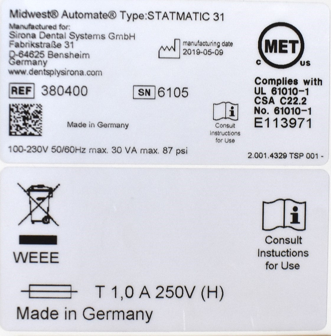 - Model: AutoMate Handpiece Lubricator