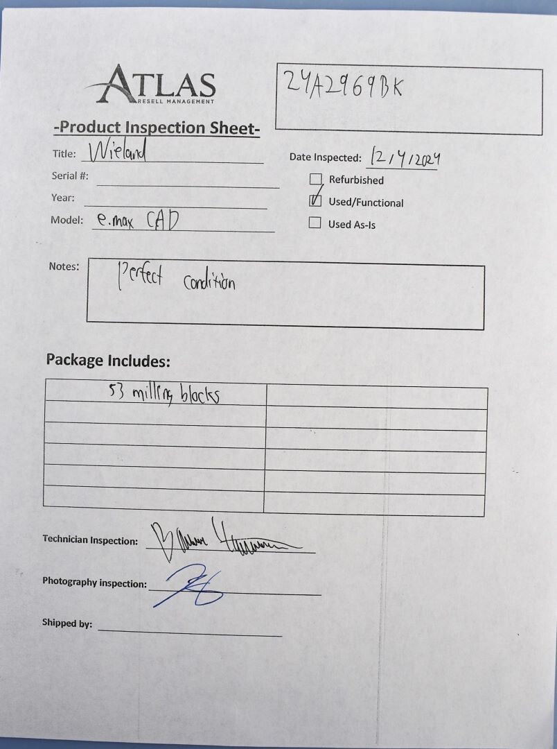 Atlas Resell Management has more experience testing and shipping CEREC and other CAD/CAM units than anyone else on eBay. Just check out the wide selection of CAD/CAM units in our store.We're proud to be the most trusted source for quality used CAD/CAM units in the pre-owned dental equipment market. Your purchase will NOT include: This product is pre-owned and may not include the same accessories as a new, unused unit. - other accessories not shown or listed here.Visually inspected each block and took stock of the unit. Each one is present and in perfect condition. -BH