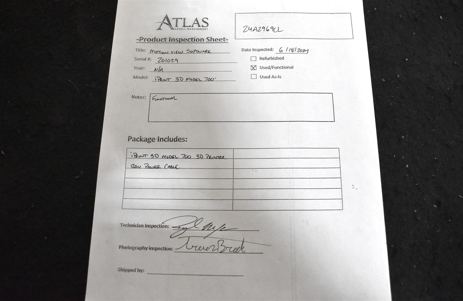 Your purchase will NOT include:Software, Drivers, Manual, Resin, USB CableThis product is pre-owned and may not include the same accessories as a new, unused unit. - other accessories not shown or listed here.Visually inspected the unit for any damaged or missing parts and accessories. Connected the unit to a PC and inspected the connection for communication. I was unable to function test this unit due to not having any resin and software for it. Inspected the internals of the unit for any damaged or out of place parts and items. This unit is fully functional.