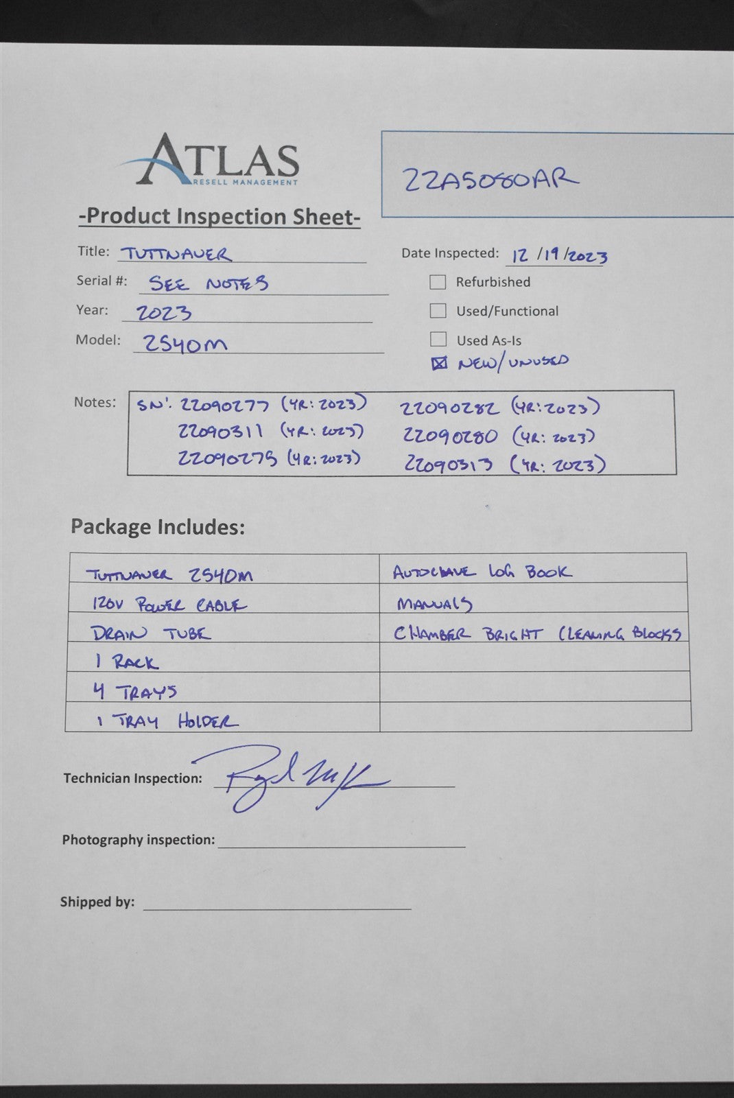 - Serial Number: 22090277, 22090311, 22090275, 22090282, 22900280, 22090313