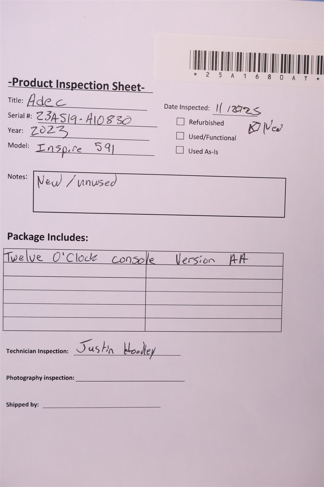 - Model: Inspire 591