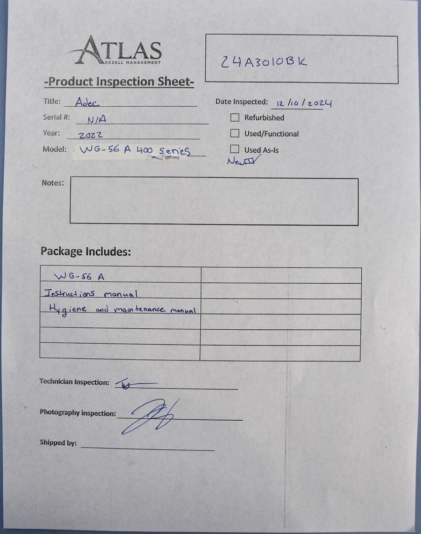 Your purchase will NOT include: - other accessories not shown or listed here.2022 Adec W&H Synea 400 series WG-56A still in the manufacturer packaging.