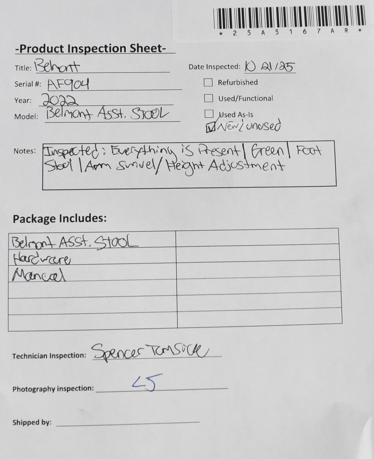 - Model: Belmont Asst. Stool